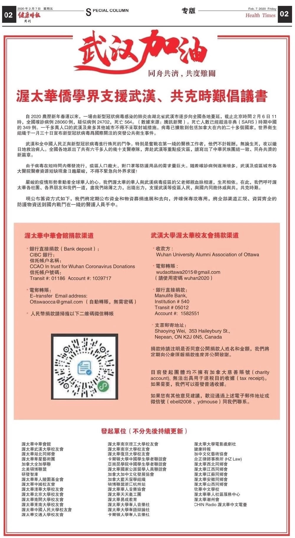 驰援武汉,我们在行动 | 武大渥太华校友会募捐进展公示(2月9日)