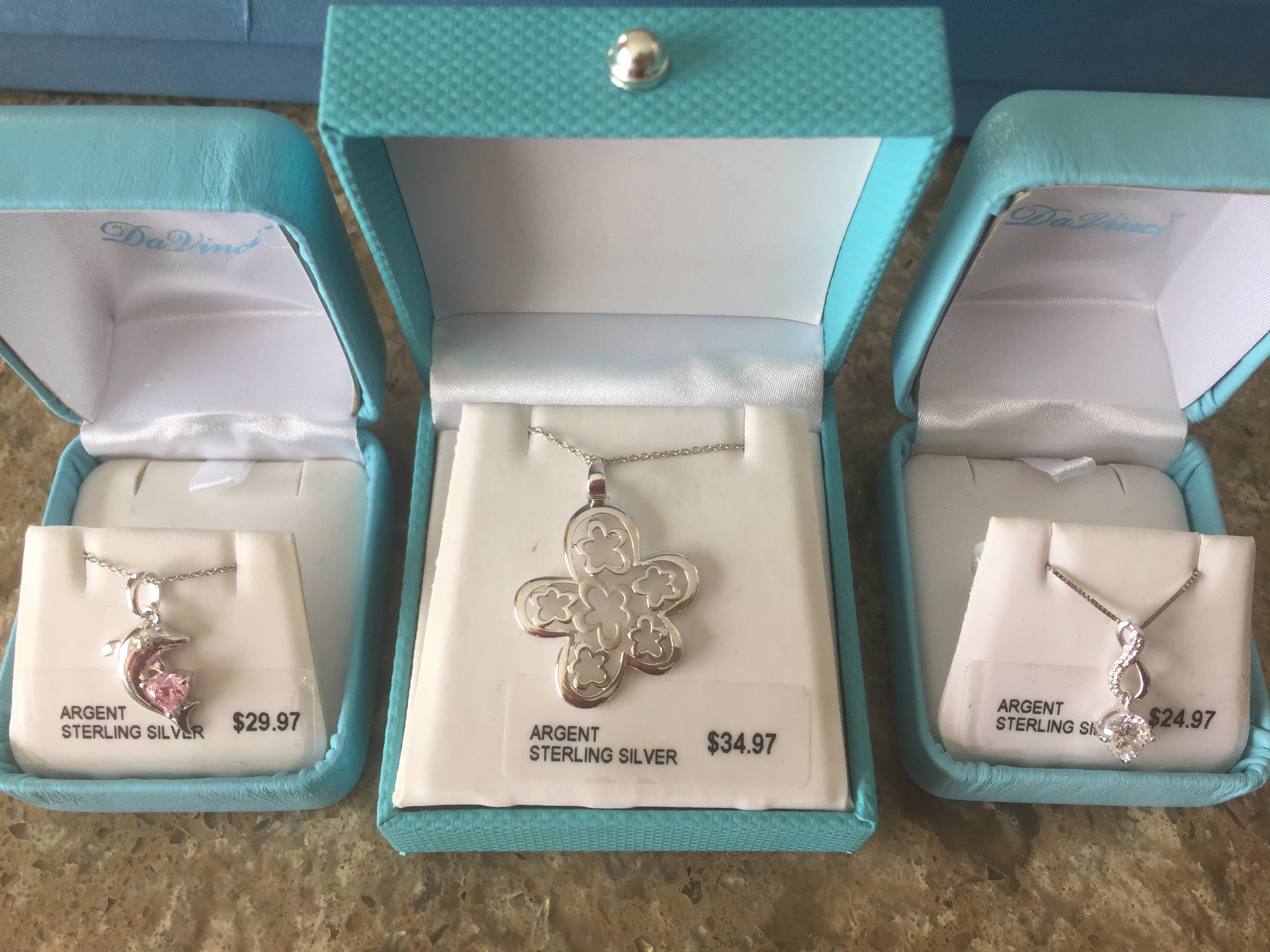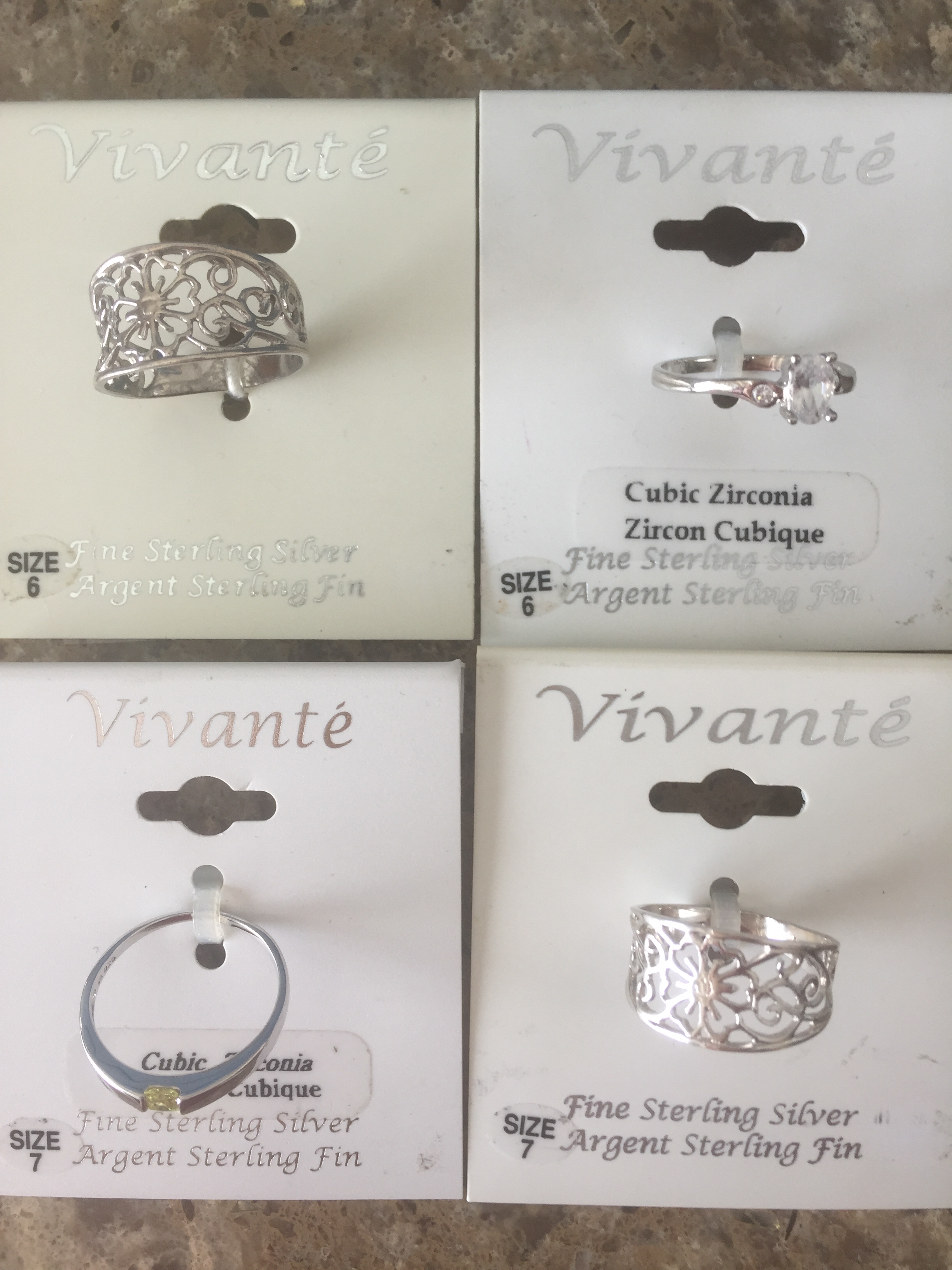 耳坠 $4-10一对, 戒指(6,7,8号) $10 一个,项链$10-14一条,纯银项链加珍珠坠$15一套. 电话6136564737