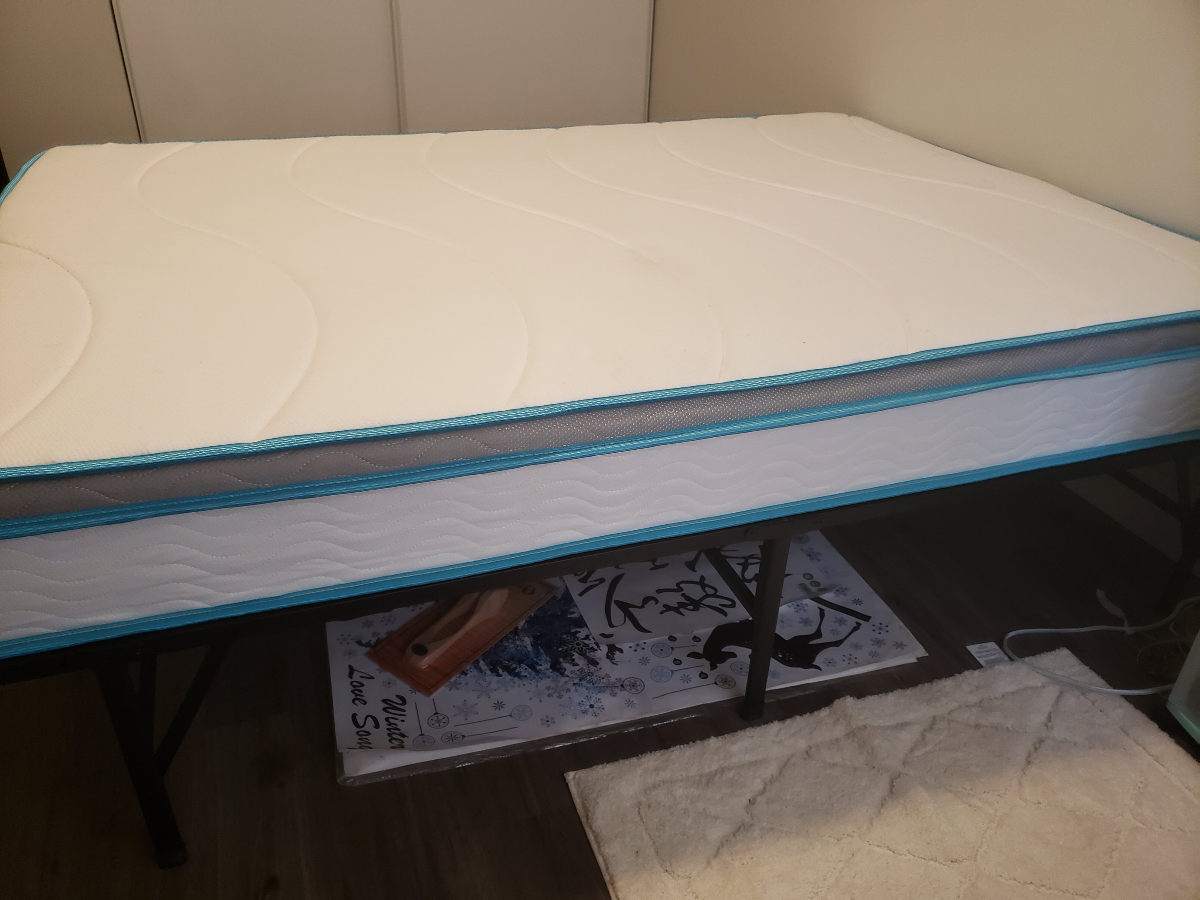 现卖今年新买的弹簧+记忆棉床垫,和拆装都很容易,方便折叠存放的床架。原价500多买的,现在床垫+床架280包送到渥太华,parkdale自取还可以减20哈.