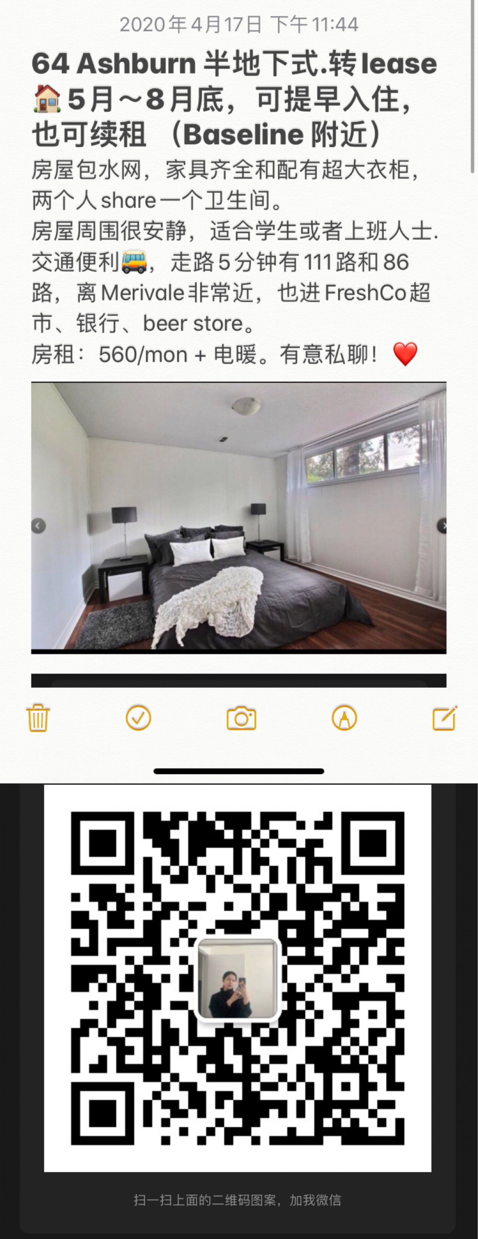 交通便利,走路5分钟有111路和86路,离Merivale非常近,也进FreshCo超市、银行、beer store。