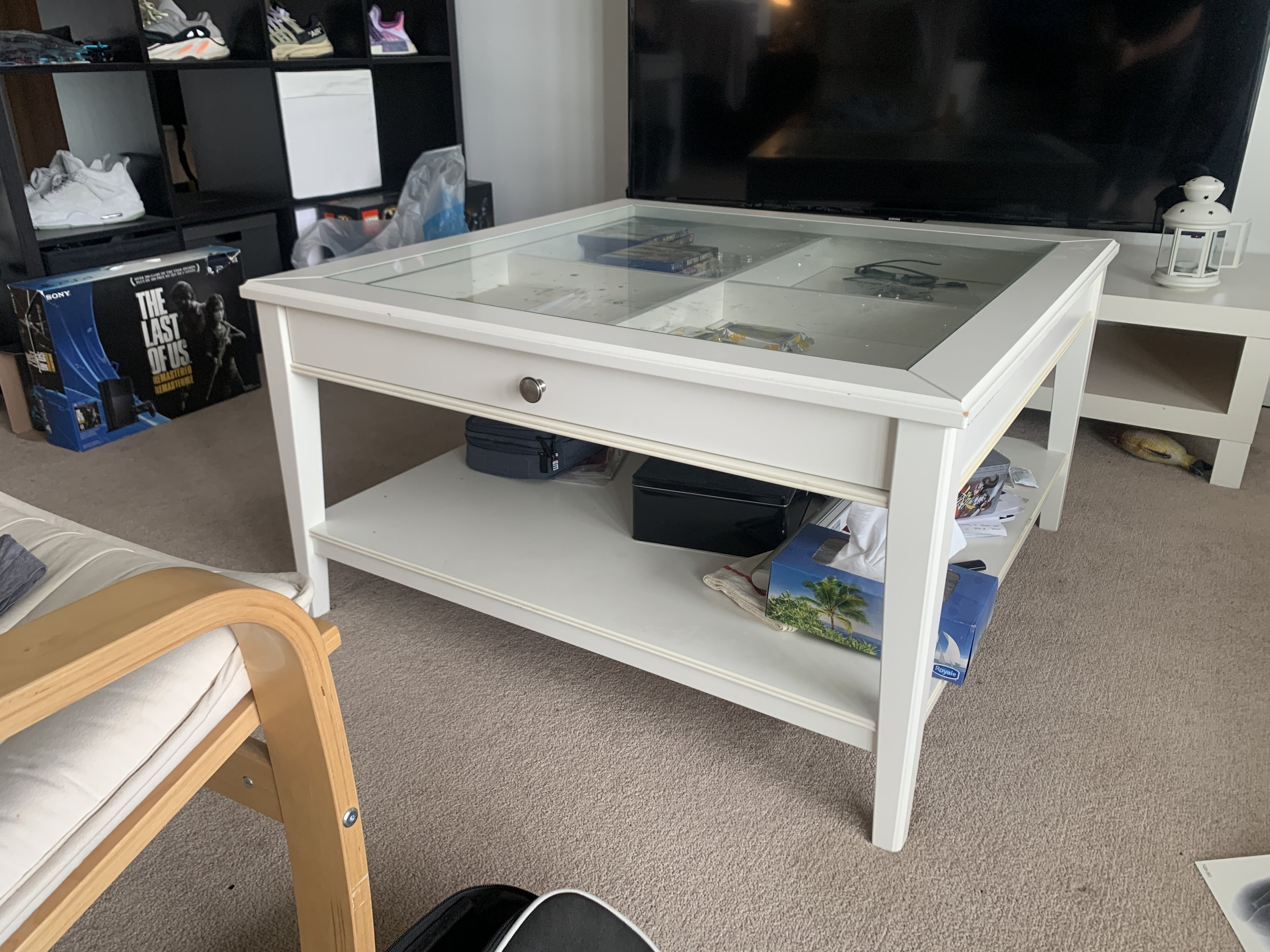 IKEA 玻璃面 带抽屉的茶几 $90