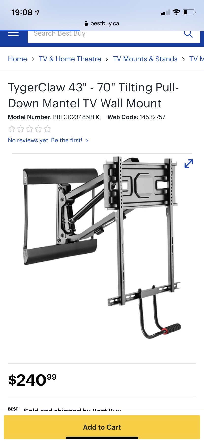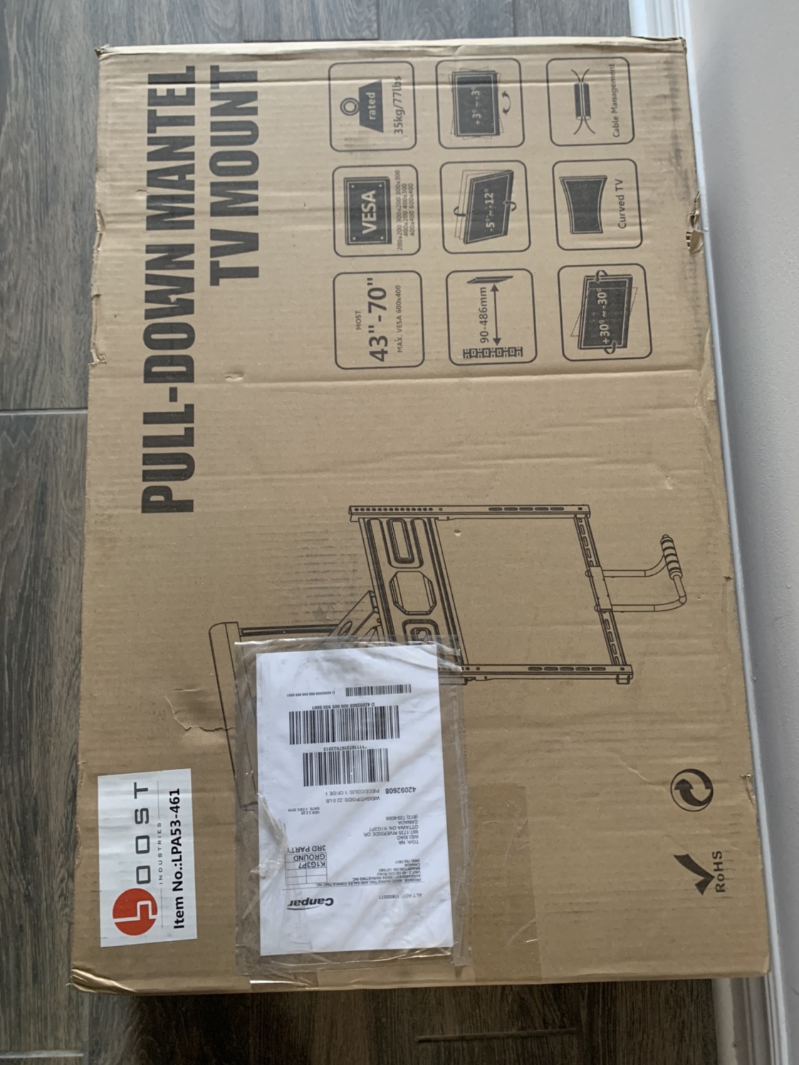 如图所示适合将电视上墙在壁炉之上,适用于43寸到70寸之间,可下拉,可上下左右调整角度,可适用于平板和曲面电视可。Best Buy入手,全新仅拆封,现因不适合自家布局出手,boxing day时$189入手,现$120出手,可送货,电话6137206066仅限短信谢谢