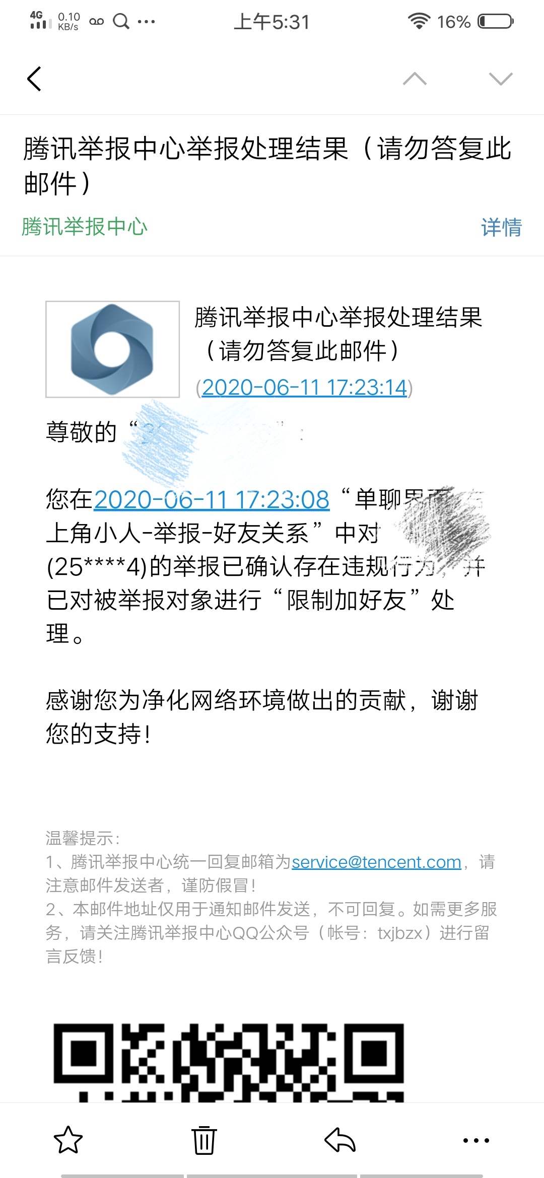 自 自觉无所不能的家庭主妇 新手上路 注册 2020-02-02 消息 91 荣誉分数 0 声望点数 16 2020-06-11 #2 这是我举报他冒充我好友加我的qq举报中心的回复邮件,大家千万要小心。 附件 IMG_20200611_053331.jpg 396.7 KB · 查看: 108