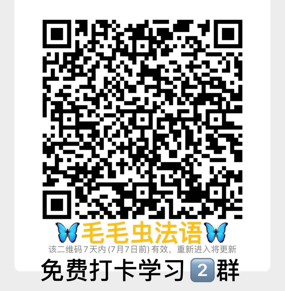 今天分享的这个微信群,是由全球第二大法语城市蒙特利尔的知名法语讲师发起的,群里面不仅有免费的法语打卡课,还有老师辅导学习。 更重要的是,不需要集赞,转发,就可以免费加入这个微信群! 不过,这个微信群因为严格把控学习质量,所以一个群限制名额只收200位学员。 如果你想找个专业的老师辅导学法语,得赶紧扫码入群免费学习打卡。 若由于网络问题,进不去群的同学可以加老师的微信号:andy88272616