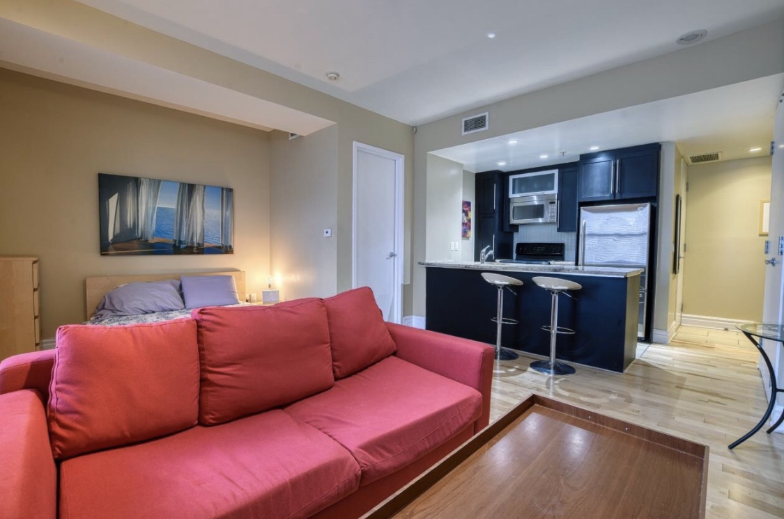 蒙特利尔最繁华的老港,历史建筑高档楼盘,40平米(420尺)大studio. 离圣母教堂(Notre Dame Basilica)100米,离地铁站Place-d'Armes(唐人街)走路仅2分钟。附近所有类型商业,购物,餐饮,应有尽有。