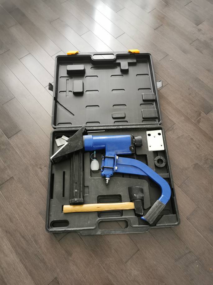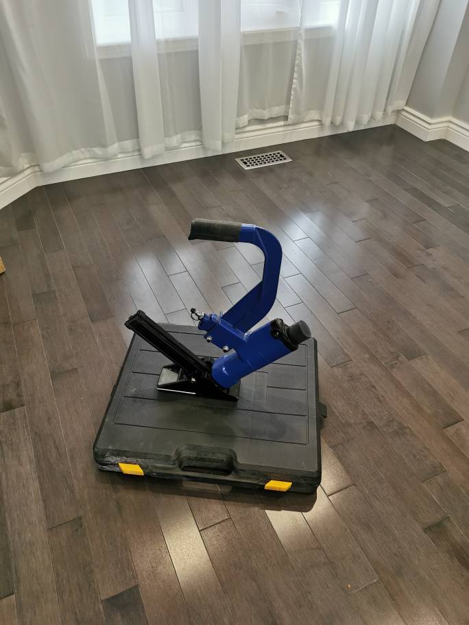 very good condition all accessories in box. some 2" cleat nail for free. deliver available in Kanata area. 有需要换装hardwood floor 的可提供免费咨询。 fix price CAD100
