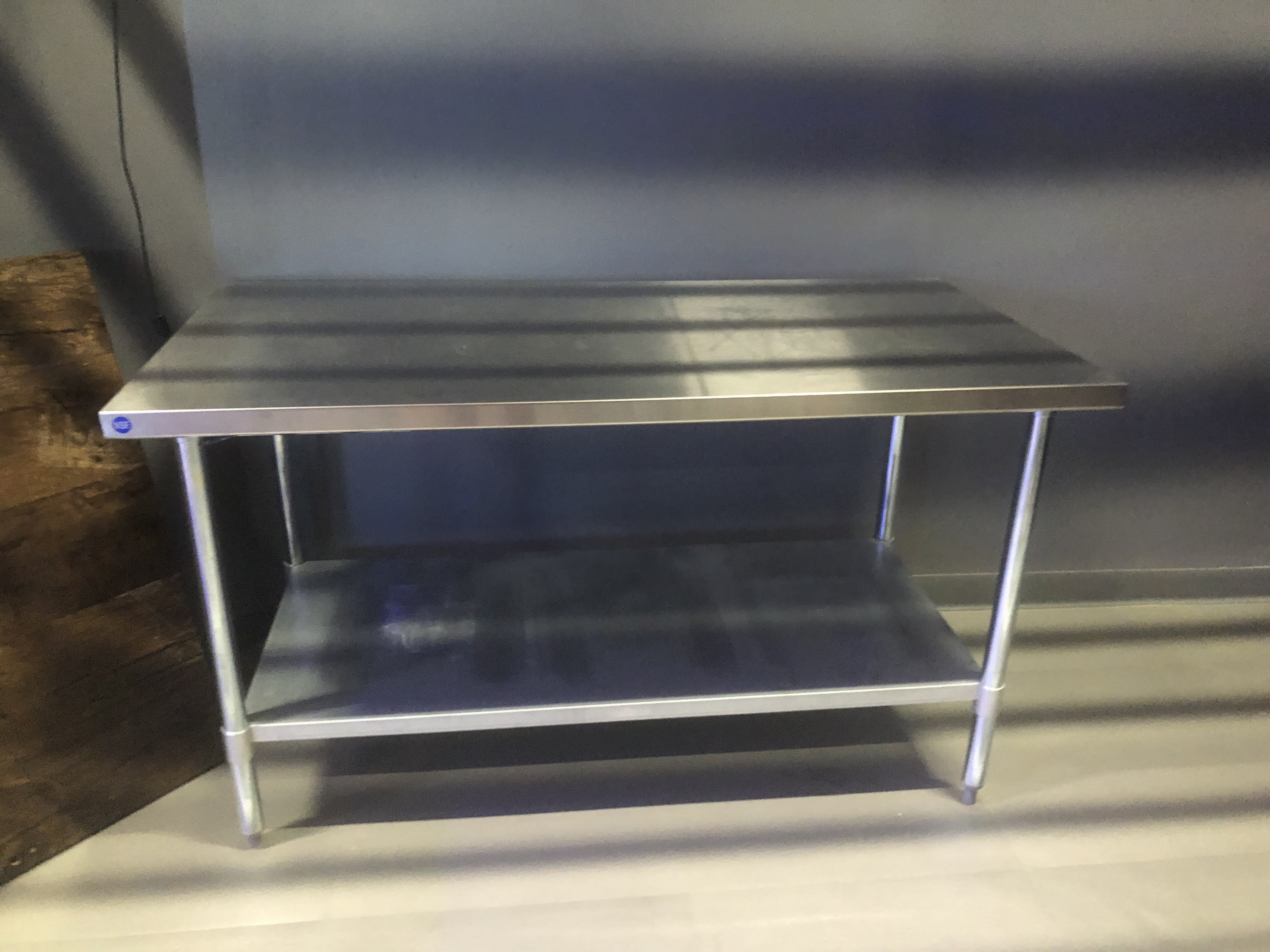 商业不锈钢桌子,尺寸是60“ x 30",质量不用说。桌子几乎全新,用了也就1年左右,现在出售$250. 附件有照片参考。