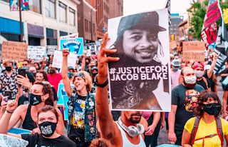 8月23日,布莱克案的视频发布到美国社交媒体后,再一次点燃了人们的怒火。案发当晚,百余名示威者在基诺沙郡公共安全大楼门口,高喊着“没有正义就没有和平”。