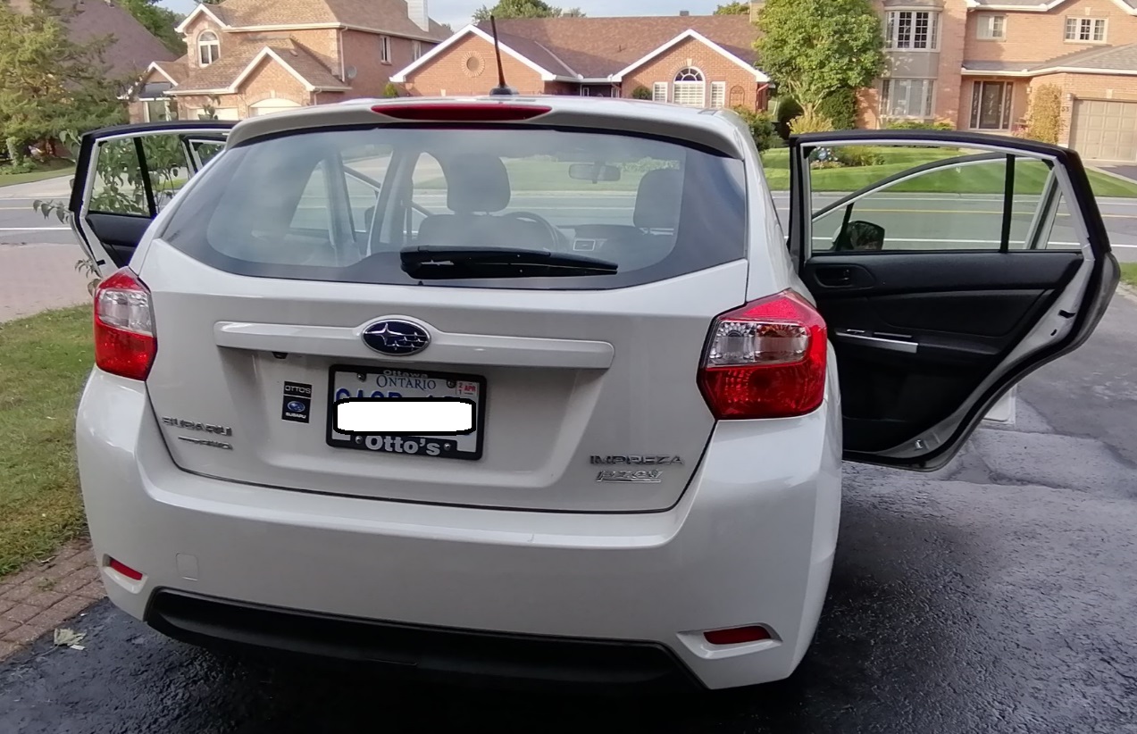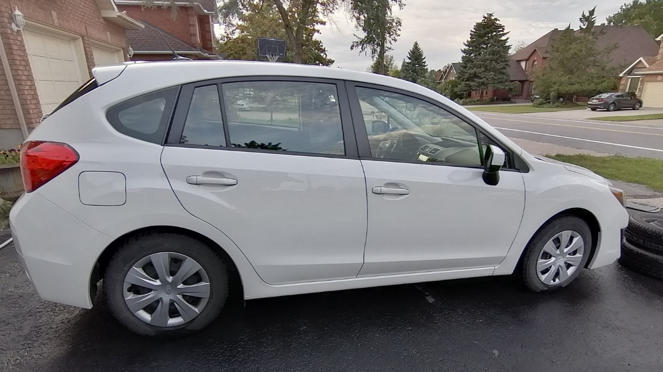2016 Pearl White (珍珠白)Subaru Impreza 2.0i AWD (全轮驱动), Hatchback, Automatic Transmission, Backup camera, 15 wheels, A/C, Bluetooth, Cruise control, Remote Keyless Entry, 4 Winter Tires on Rim included (包括冬胎). One owner, No Accident. Safety Certificated (有安全证书). Only 63,980 km (只有~ 6.4 万公里)Firm price $12,600 for fast sale.
