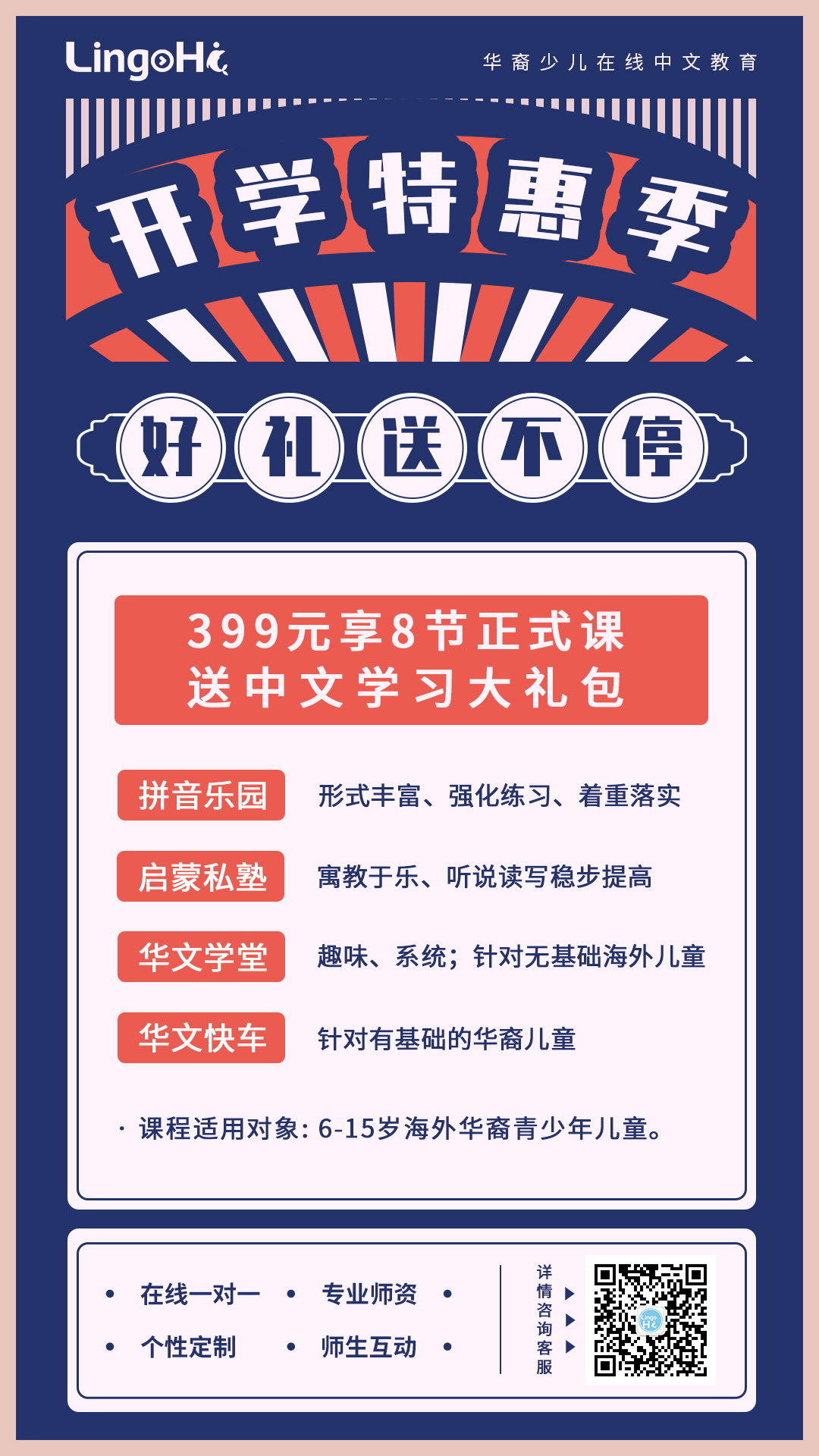 LingoHi在线中文课堂,致力于为海外华裔小朋友提供专业的中文学习课程,课件采用以国内部编版教材为基础研发的适用海外华裔少儿中文学习环境的专业教材,老师均为国际汉语教育专业的硕士生,且具有海外教学经验,为海外小朋友提供专业的中文课程