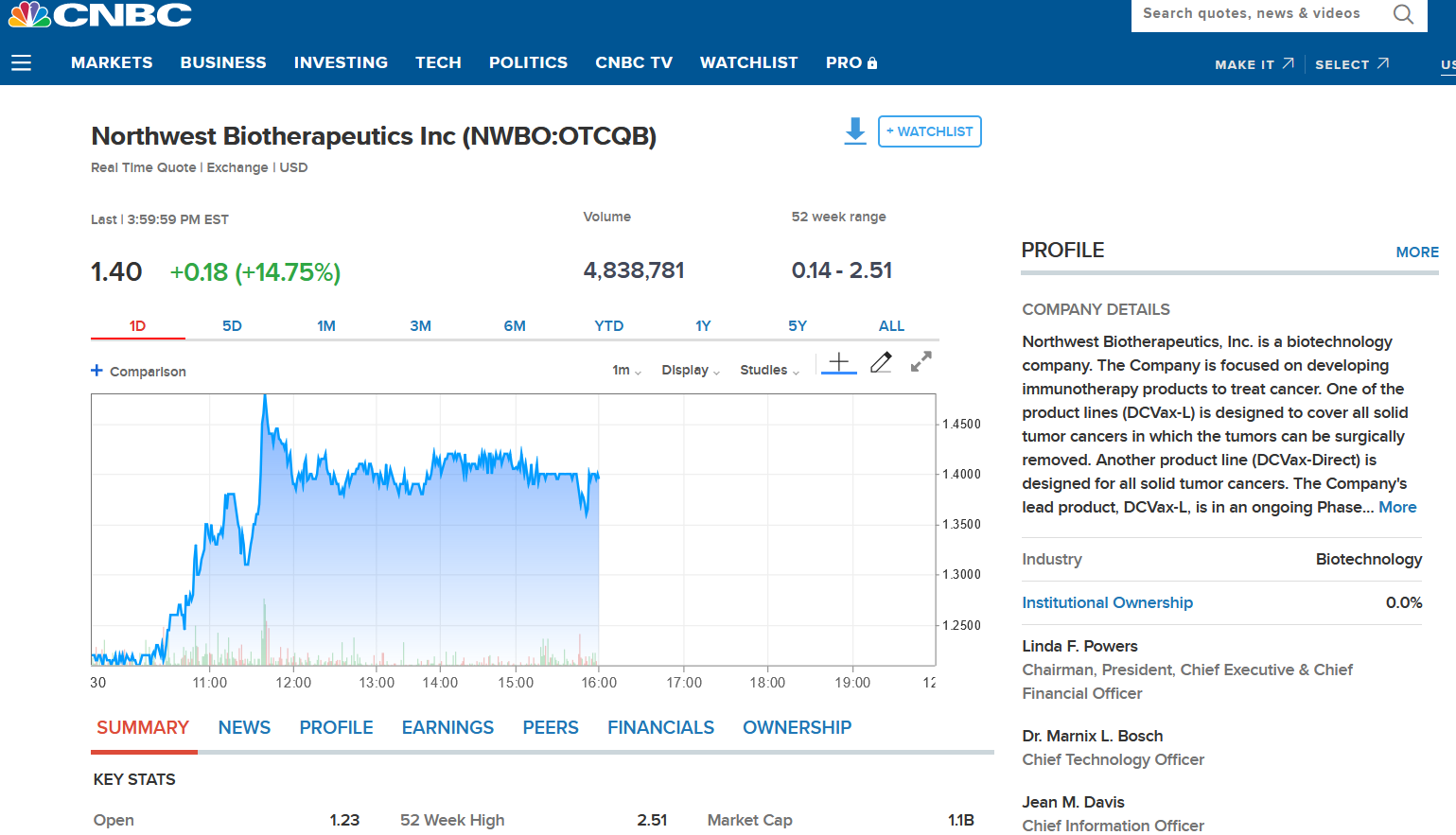 DEDUCED RECKONING: Northwest Biotherapeutics is finally ready for prime time [医药生物投资]