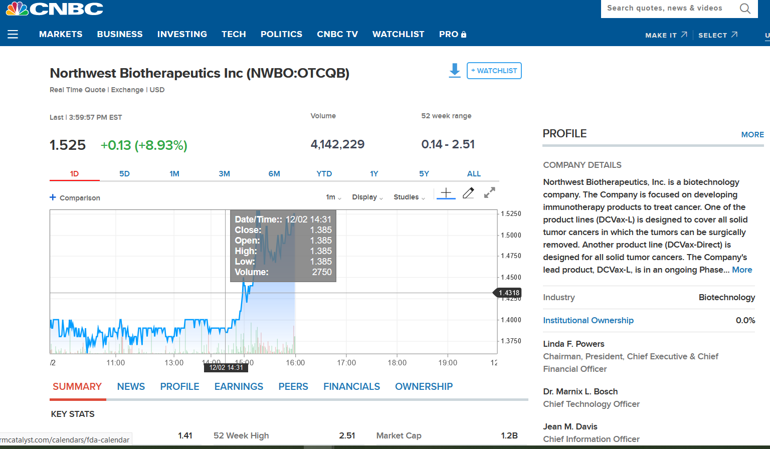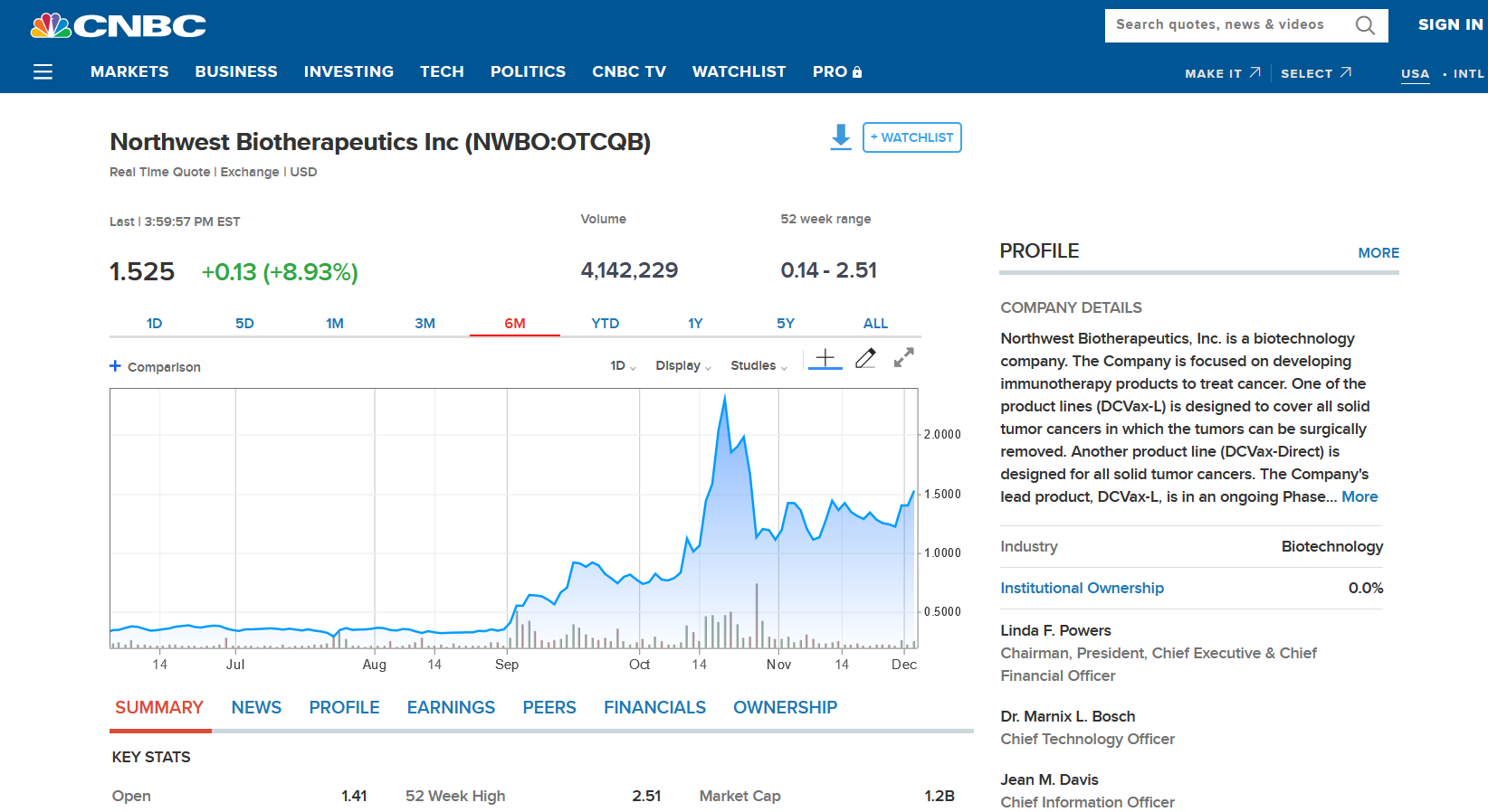 The regulators in the four countries to which NWBO is applying for approval (UK, Germany, Canada, and USA) are well aware of the vast improvement in knowledge about this dread disease since the trial began. That is why the UK and the EU recently accepted revised Statistical Analysis Plans adjusting for this new information on which approval may be granted. Those announcements were a significant factor in the recent upward trajectory of the stock.