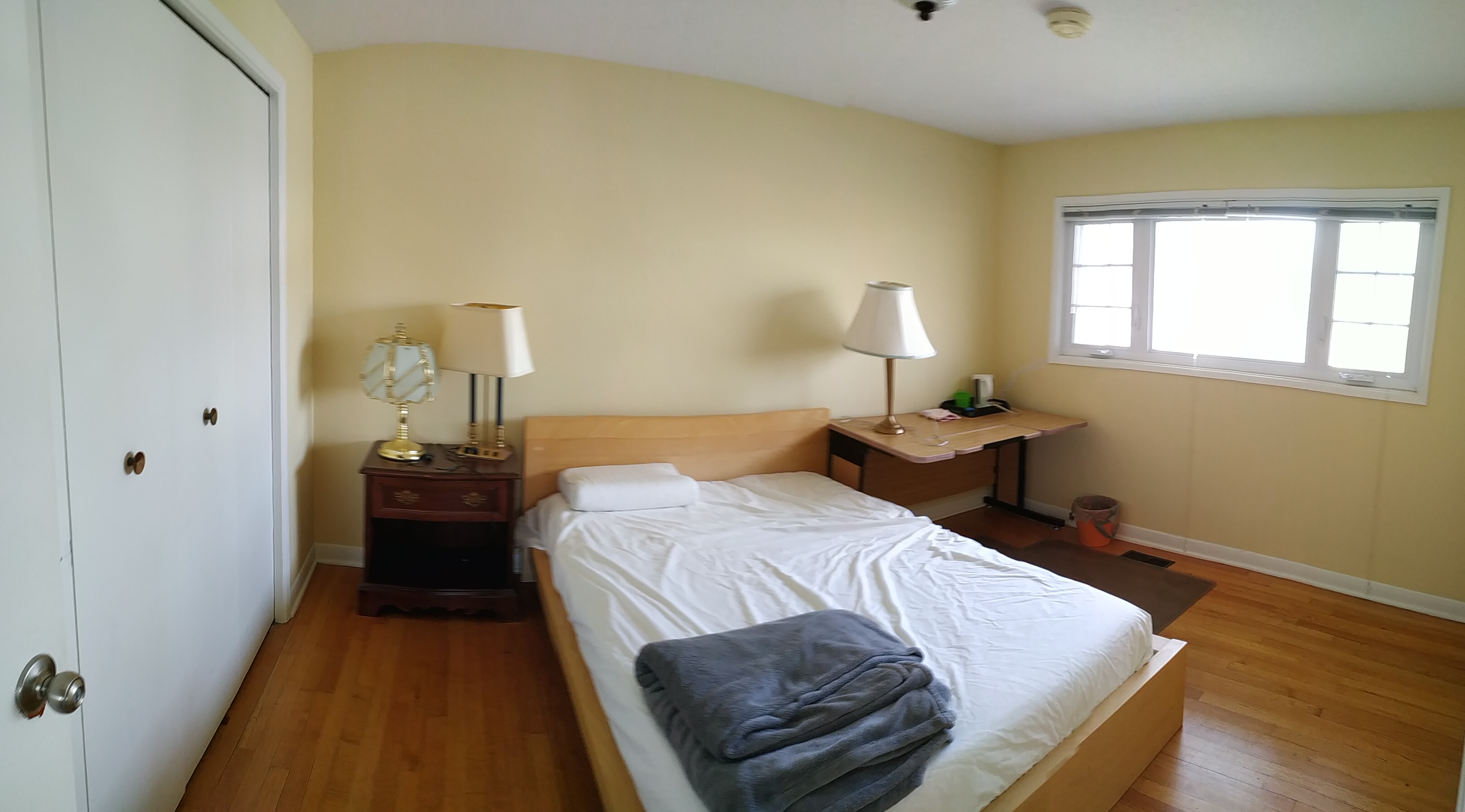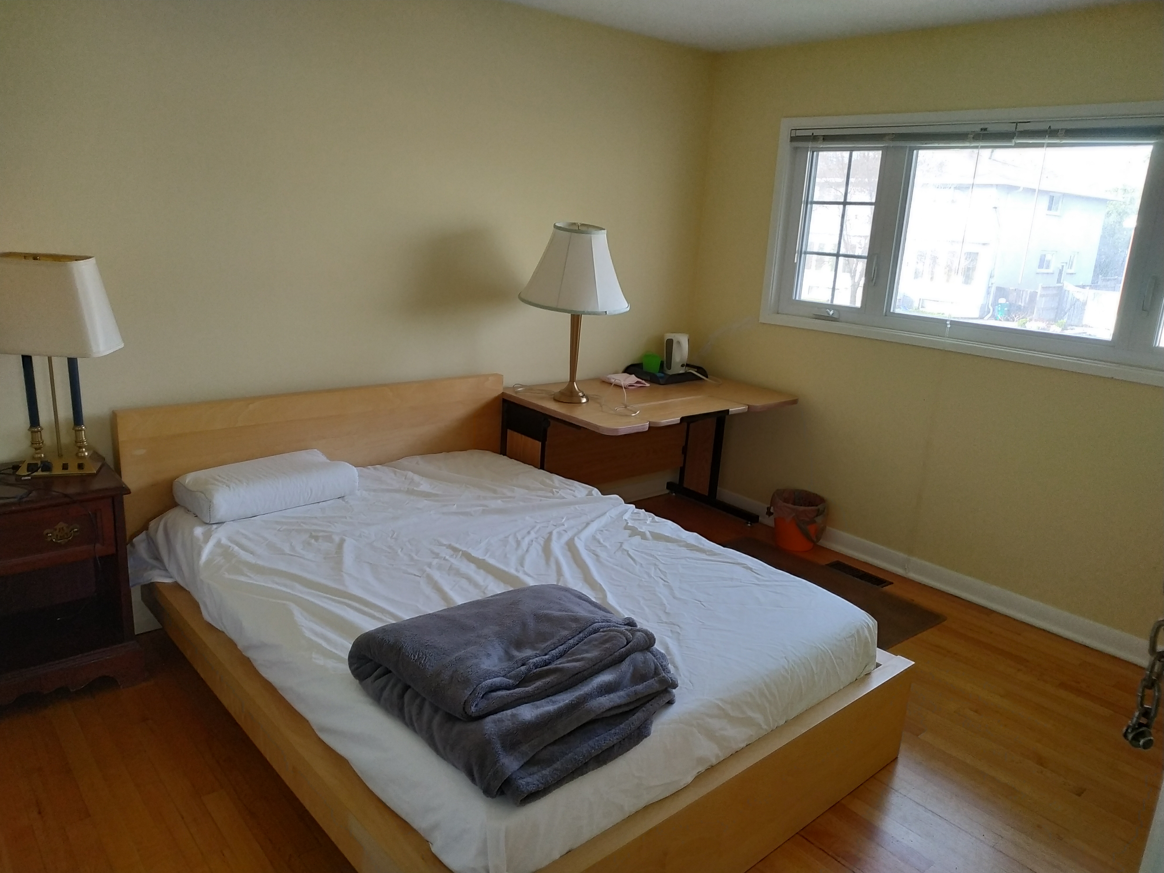Second floor bedroom with hardwood floor and large windows. Close to Pinecrest bus station, Queens way, Bayshore, Lincoln Field, and a Goodlife fitness (within walking distance).