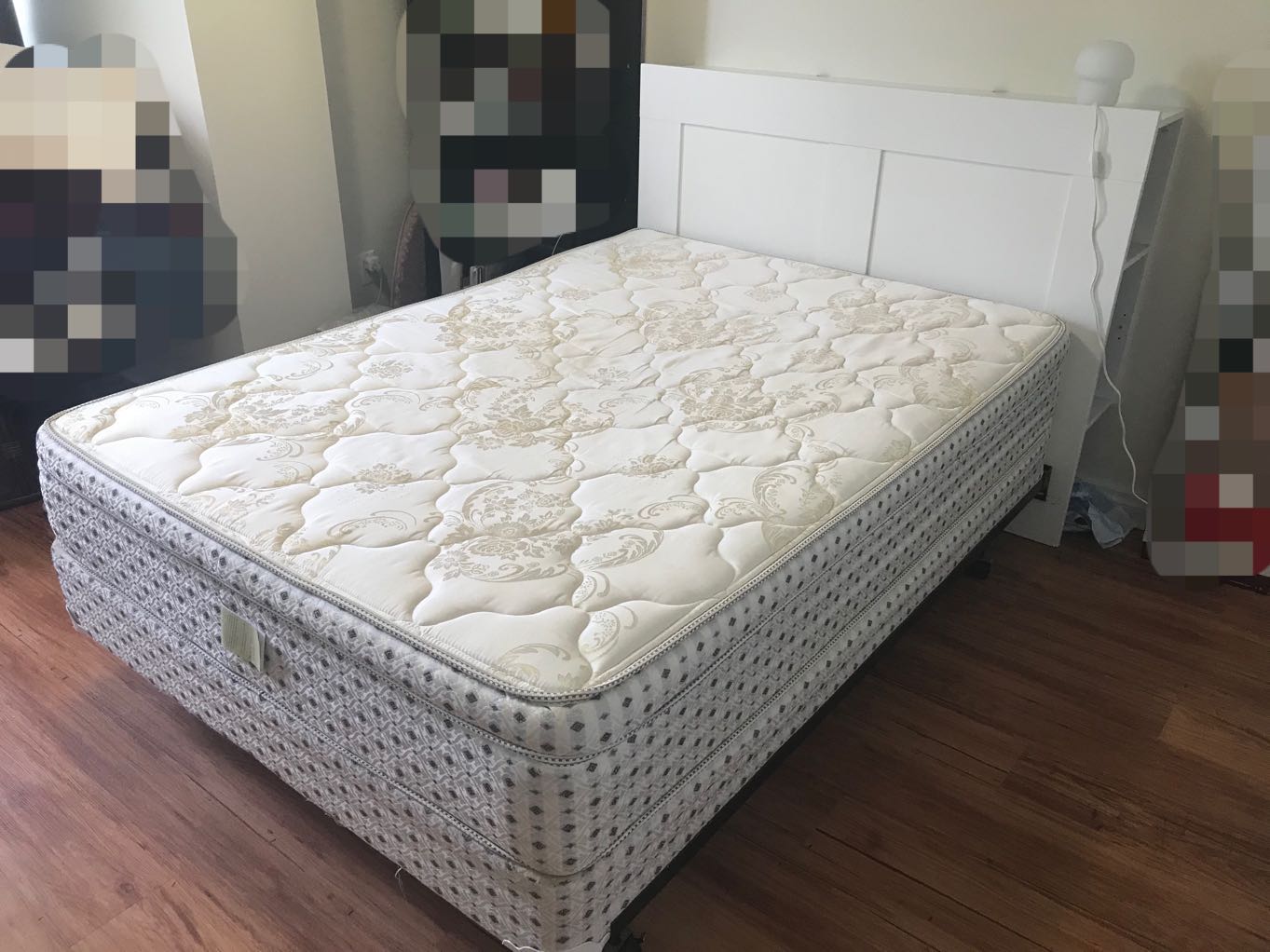 double床:床架+床垫+床头 一套出售$180,床垫非常新,一直用防水防虫保护罩套着,床头是宜家经典款白色,有储物功能,也非常新 微信:ljy2294547311 电话:6138690835 地址:1150 Fisher Ave (请自取)