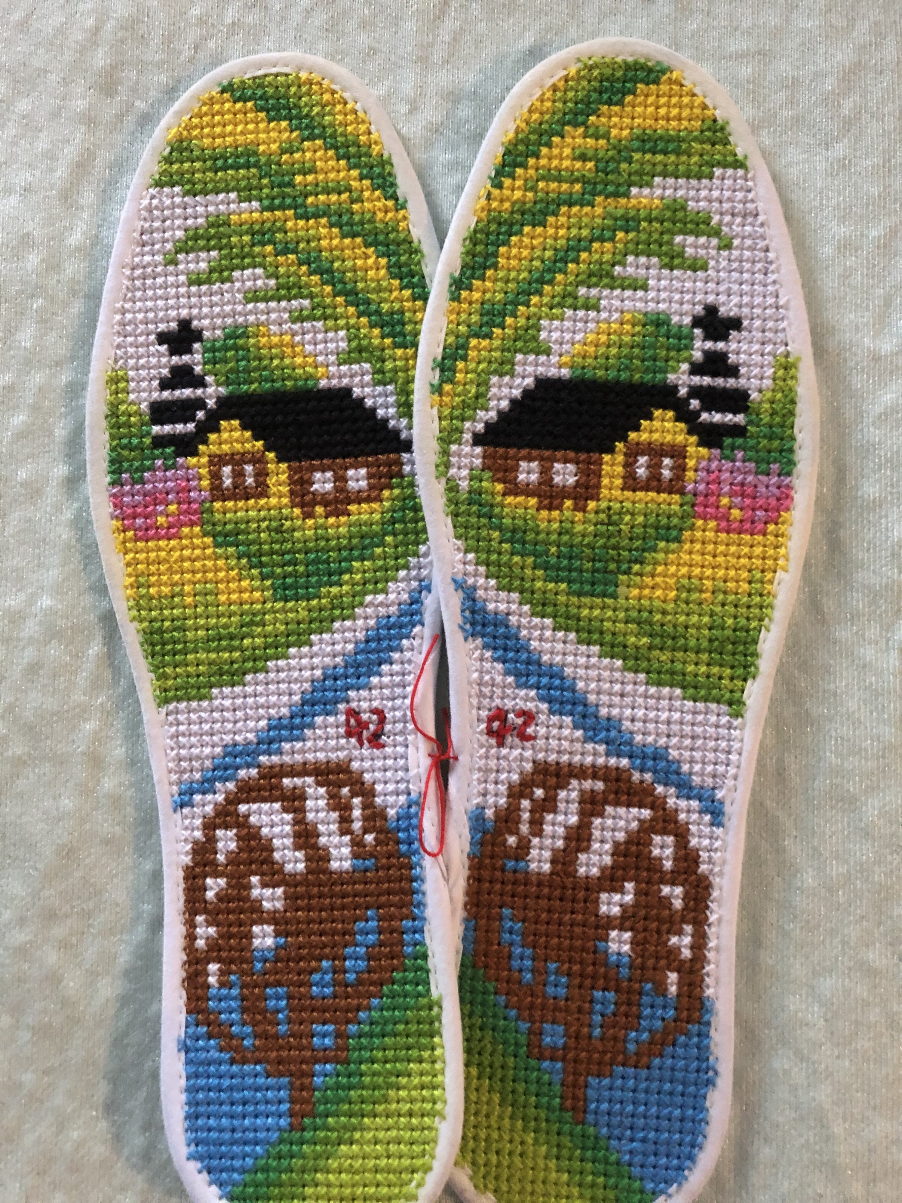手工十字绣鞋垫,$10一双,几种图案可选