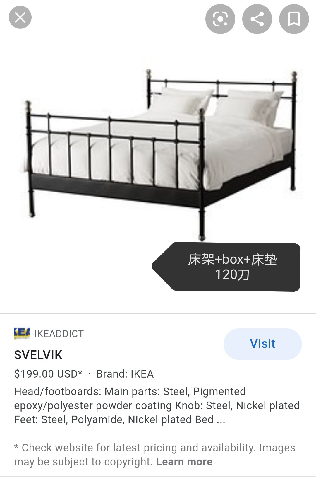 Queen size 床架+box+床垫 120刀