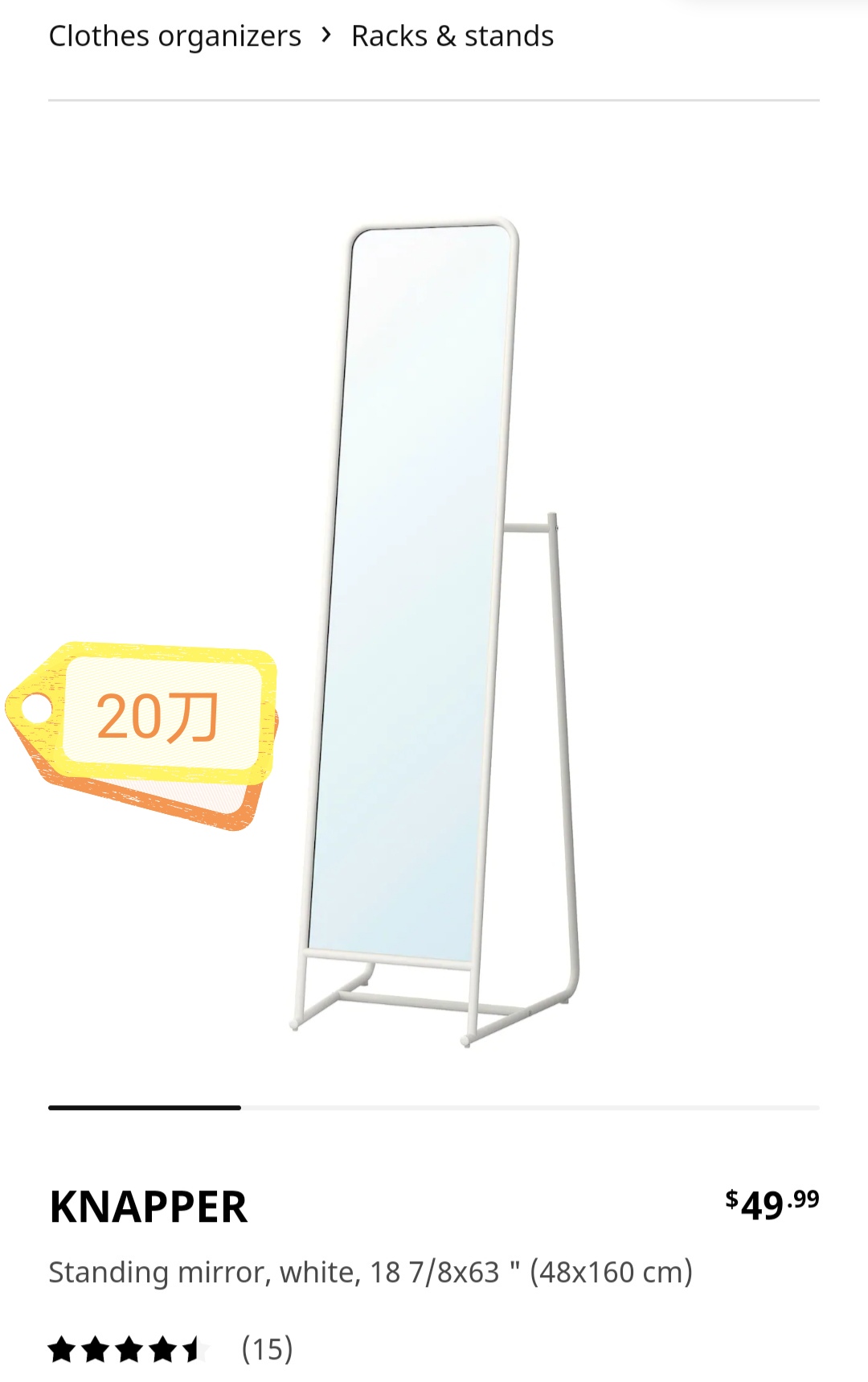 白色穿衣镜 20刀