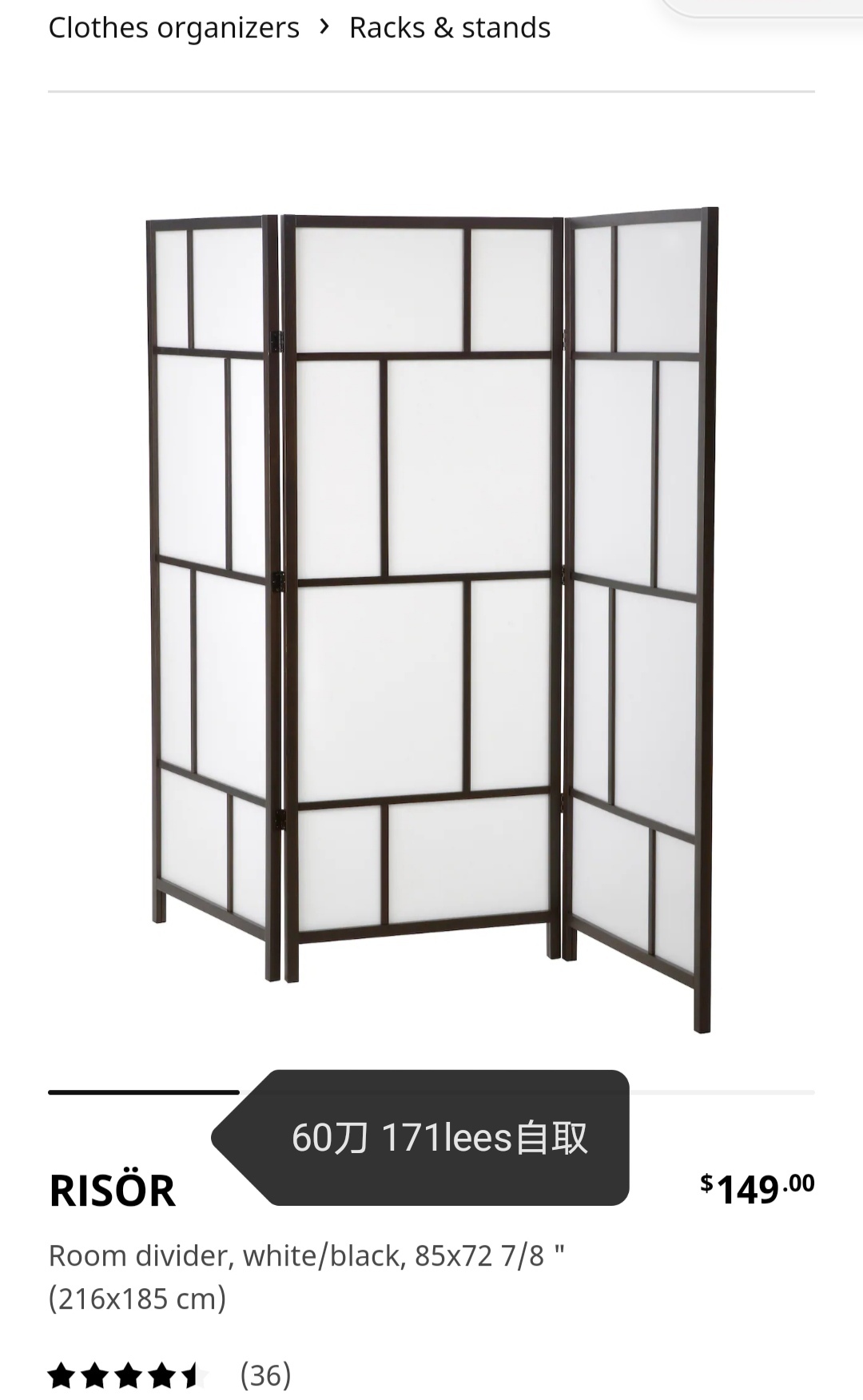 出一个屏风(room divider)60刀,送一把电脑椅。 tv stand 10刀 高脚凳 5刀 打包可小刀,会送其他小东西。 月底前171Lees自取。 微信:mmmmmmm082323 电话:613-263-8216(短信)