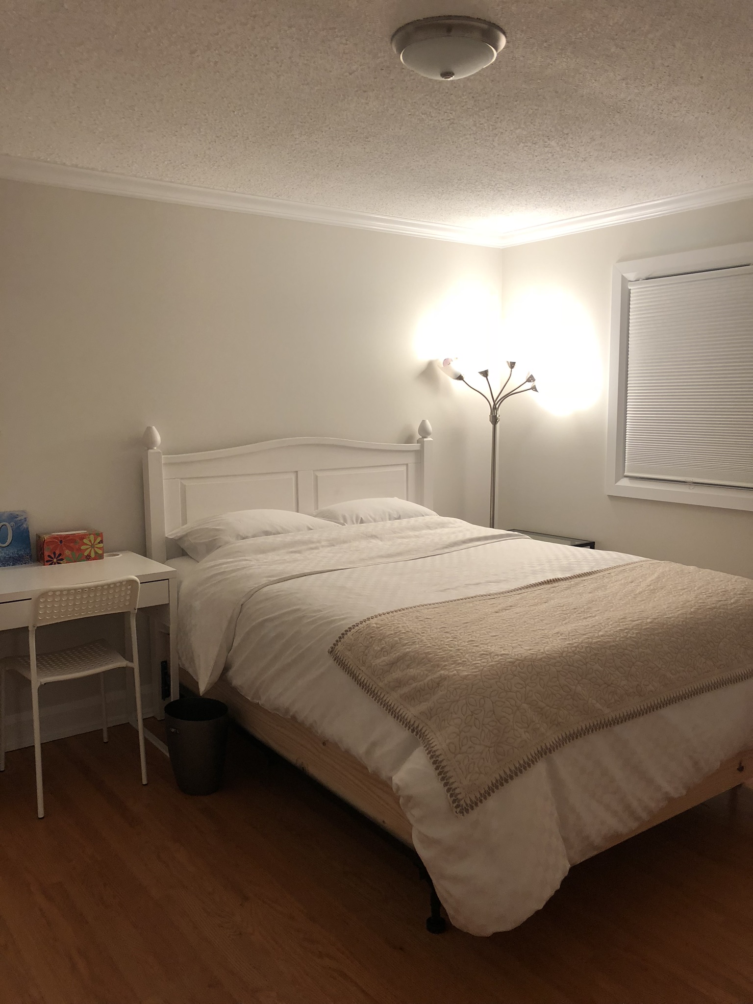 * 提供:全套家具,Queen size 床,书桌椅,五斗柜等,甚至被褥锅碗瓢盆等…真正可拎包入住。