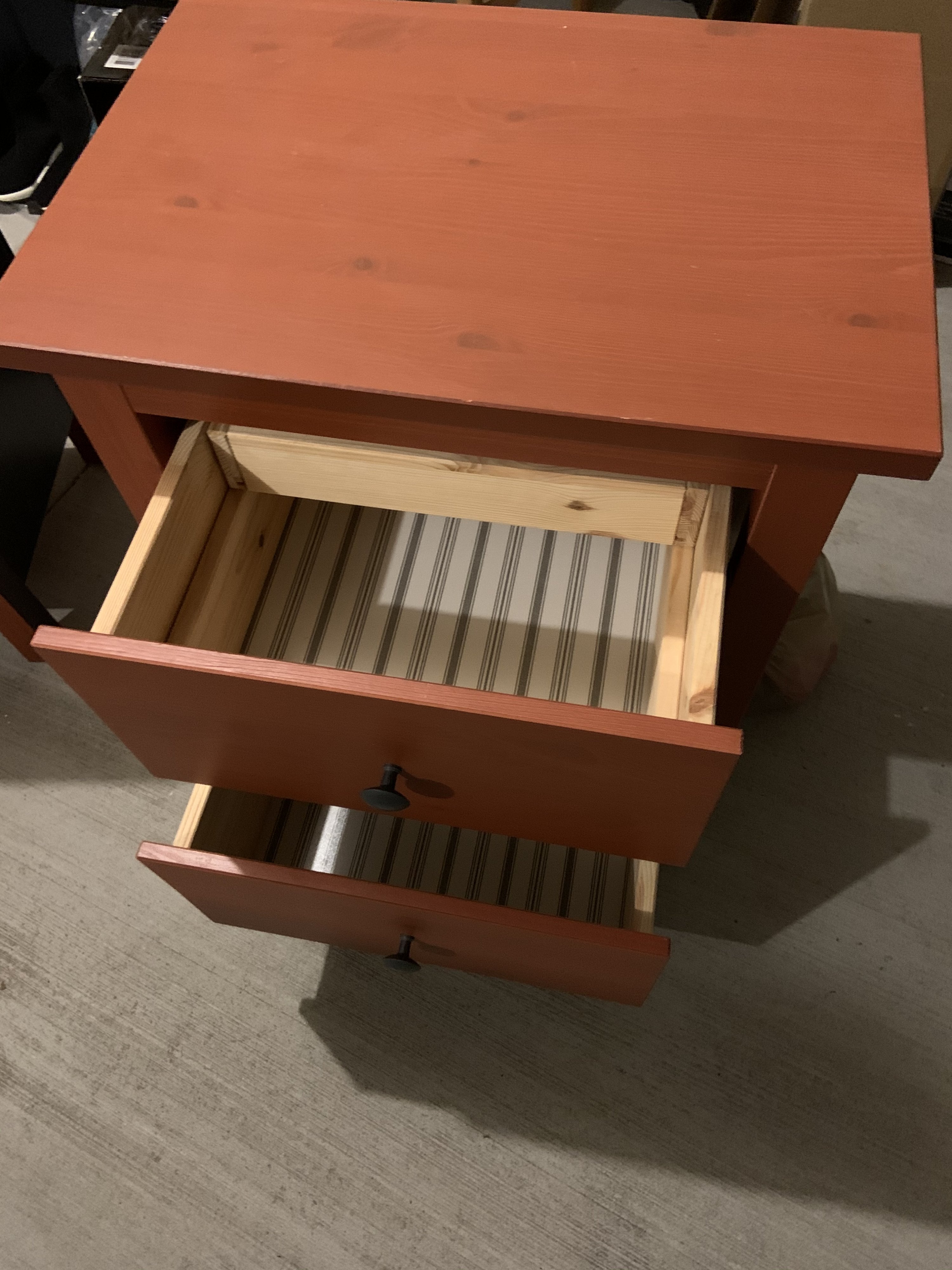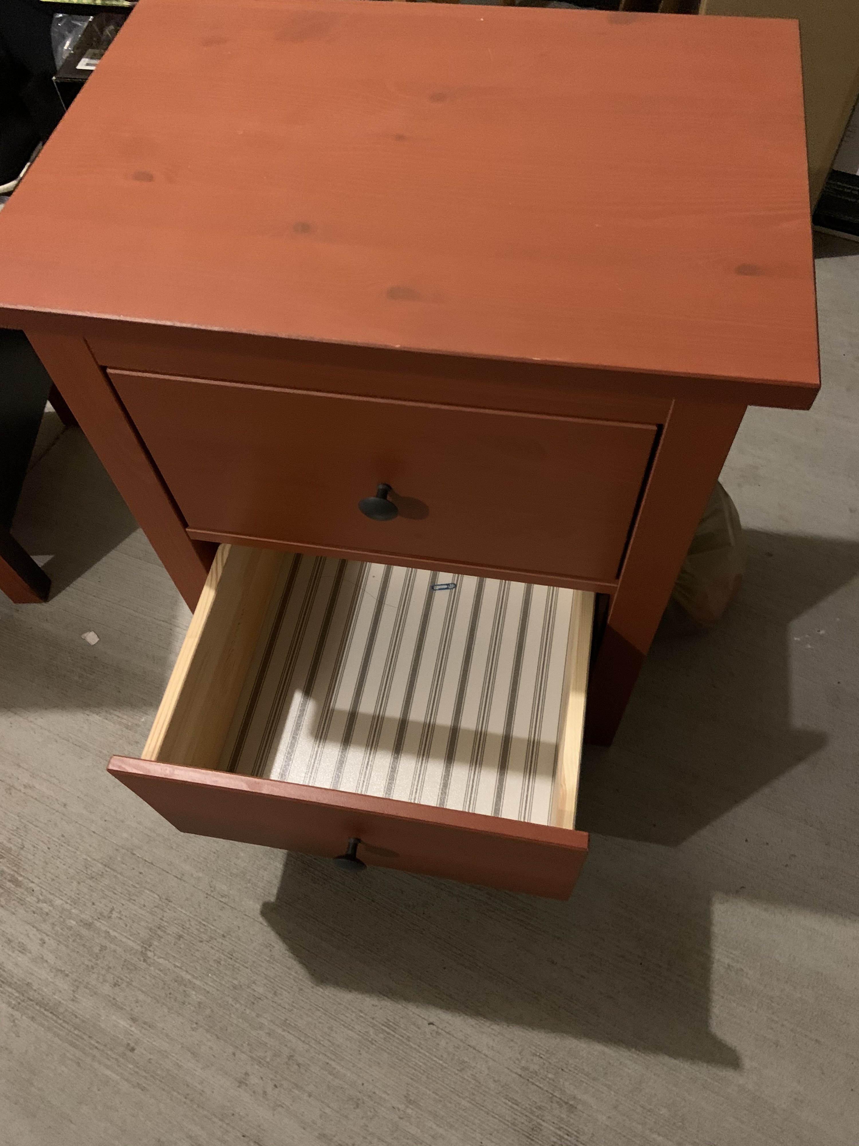 现有lkea买的床头柜两个,原价99元+税,现在售25元每个,全实木的,有需要请联系6132239800