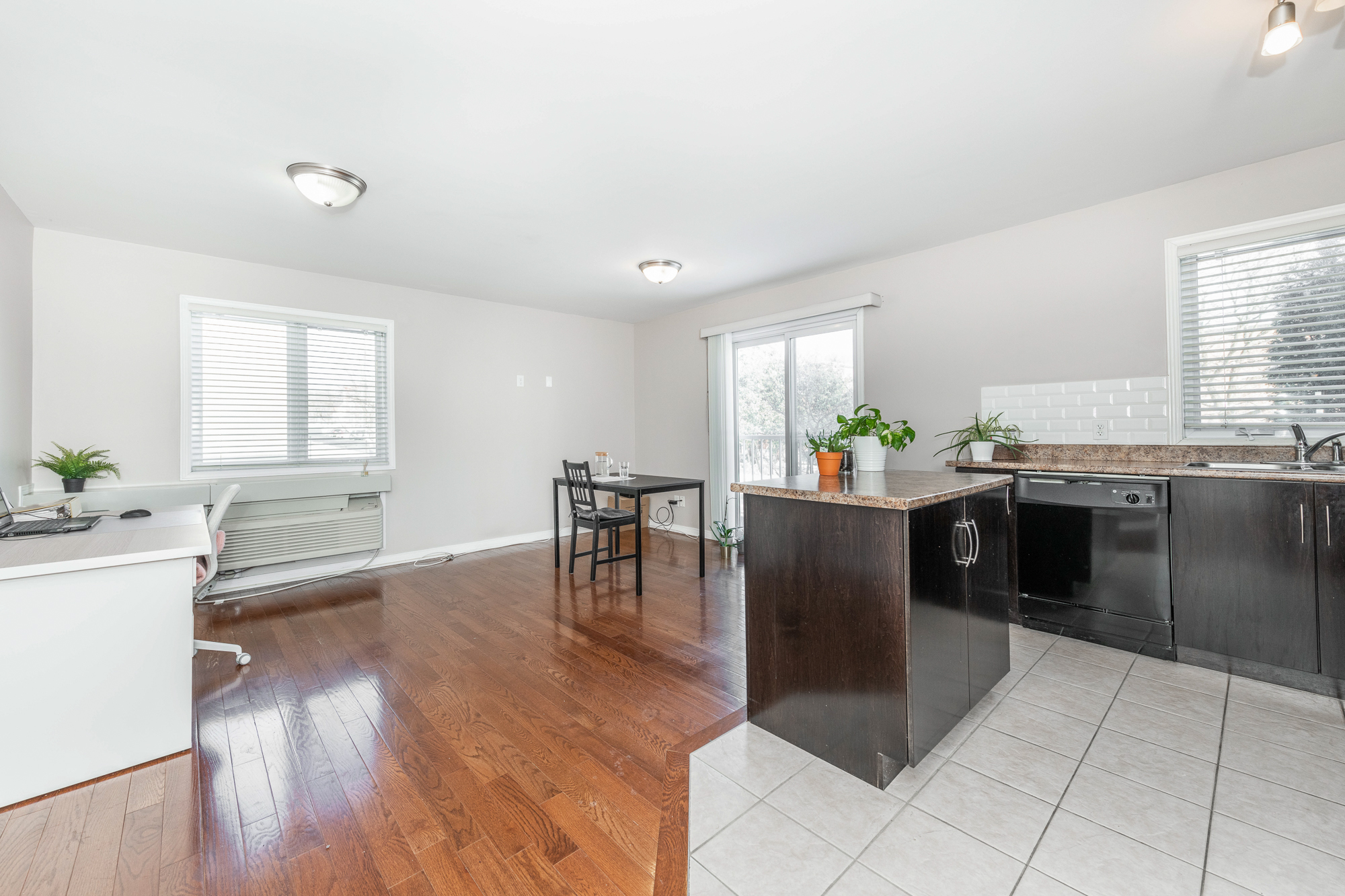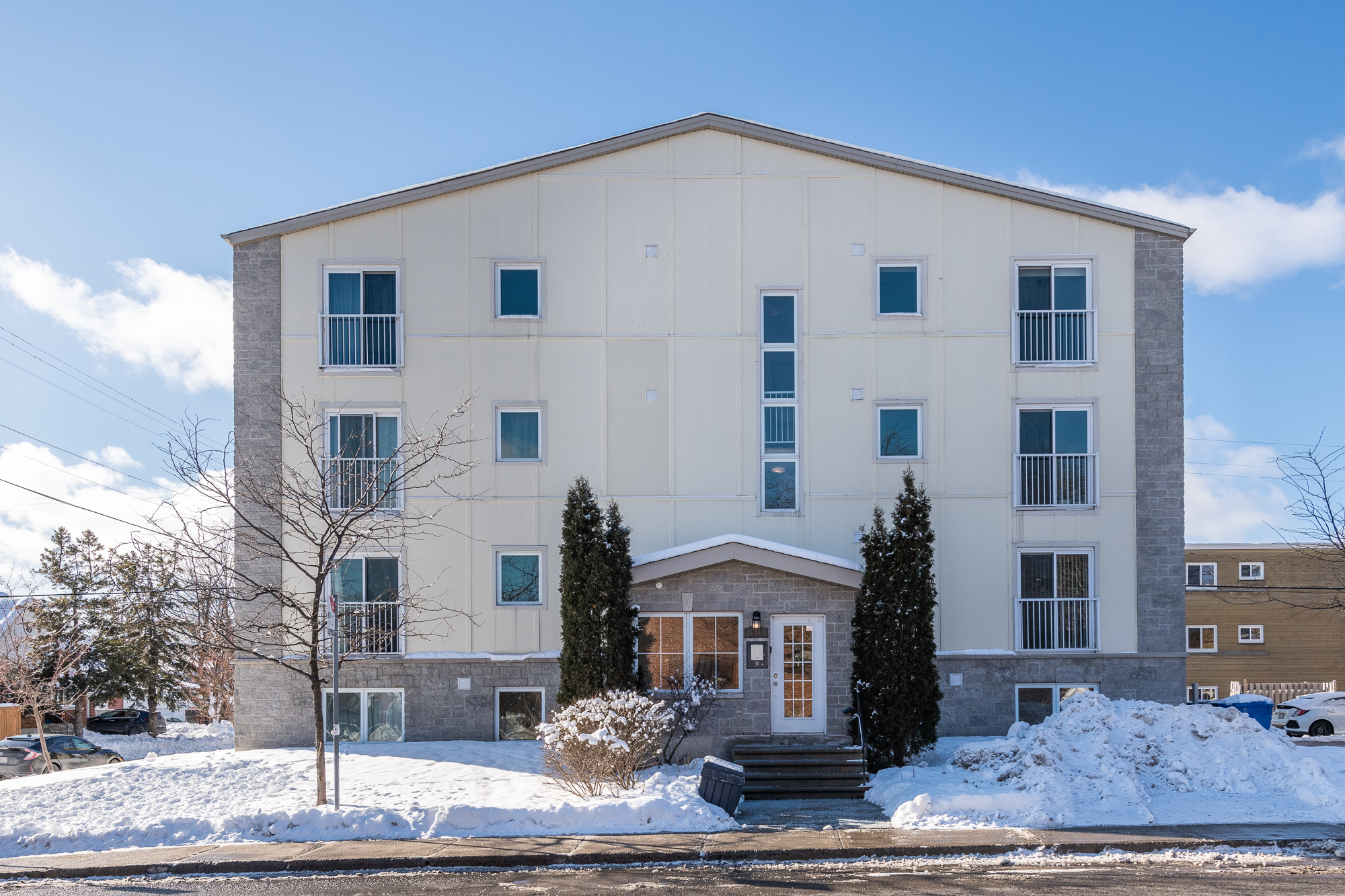 位于St. Laurent Blvd和Montreal Rd交界处的一卧室公寓,约613平尺,开放布局,光线充足,实木地板和瓷砖地面,现代厨房橱柜,单元带洗衣机烘干机,室外车位。交通便利,近公交,餐馆,购物。
