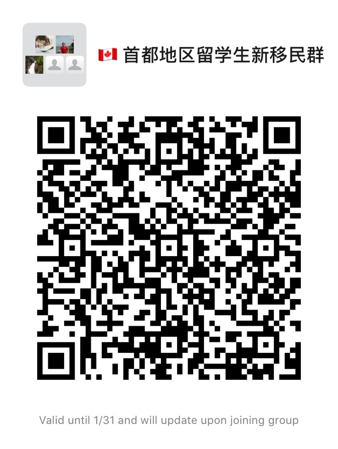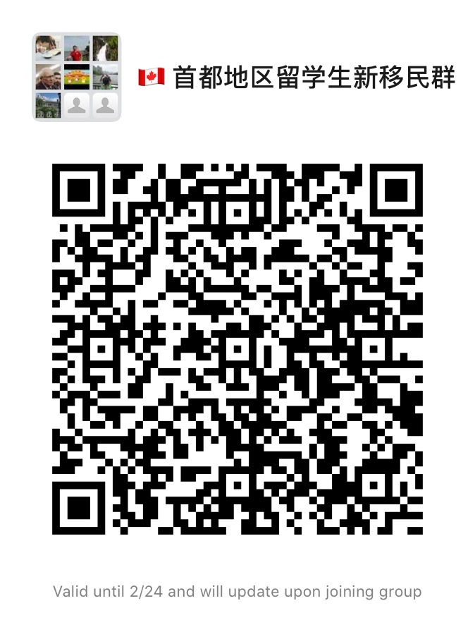 欢迎刚来或已经来到首都大渥太华地区的留学生或新移民朋友入群,大家可以尽快熟悉渥太华,互通学业和就业的信息,互相帮助,互通有无,分享学习、工作和生活的经验和乐趣。请扫下面二维码入群。注意:商家广告勿扰!
