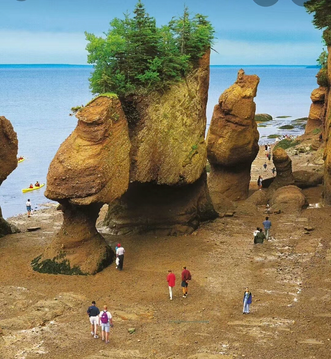 1) NB省和NS之间的芬迪湾,有着地球上最大的潮差-最大潮差超过13米! 下面图1就是位于芬迪湾的Hopewell的巨石。