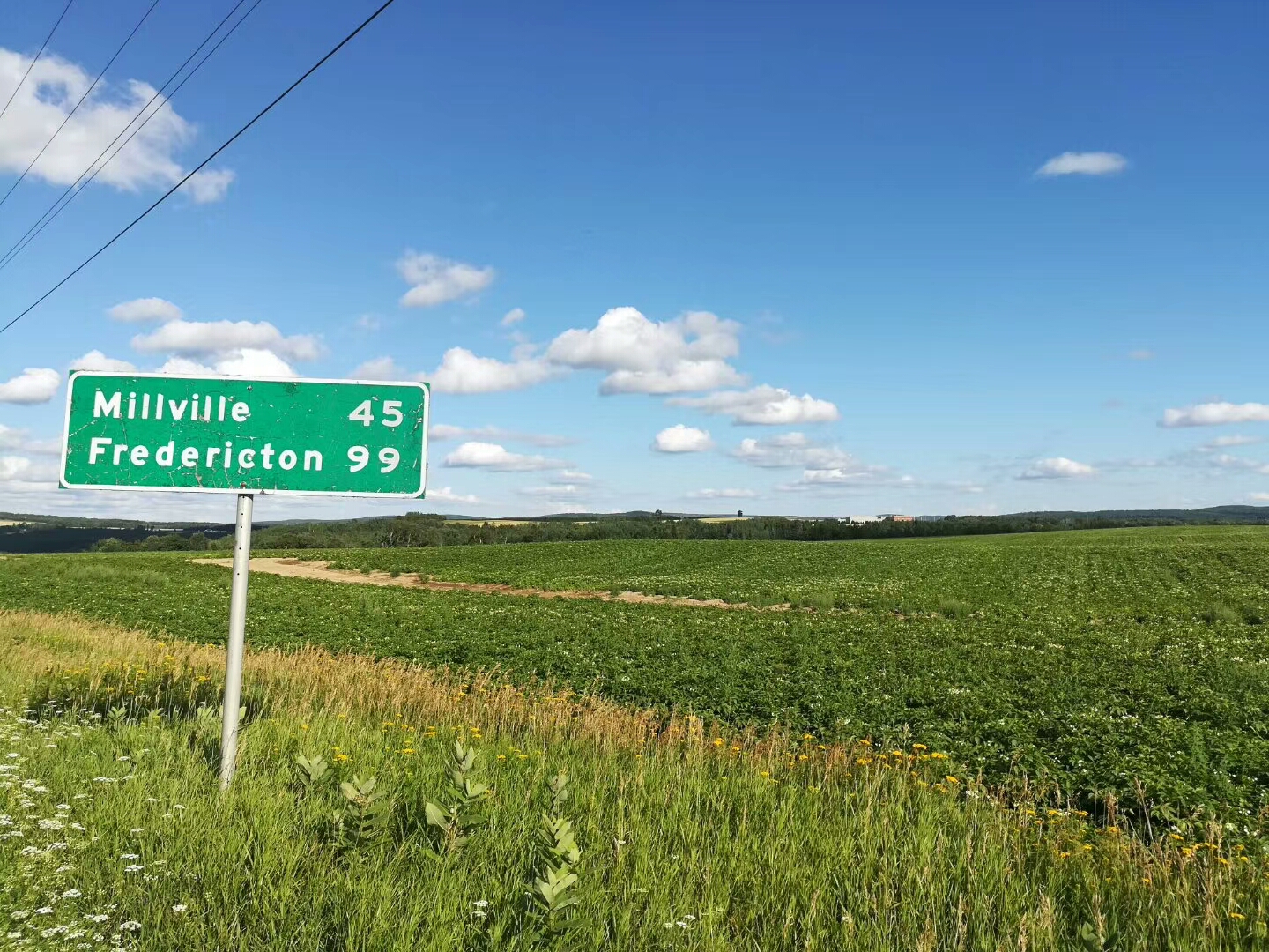刚进入NB的这一段,应该是NB省的农业区,有不少的土豆或其他农作物。指出这一点,是因为从此一直经过福莱到蒙克顿,高速两侧几乎全是茂密的森林,走的时间长了,多少有点憋的慌
