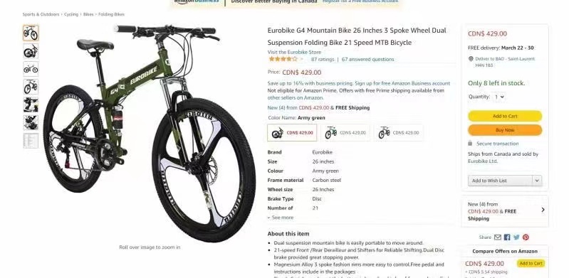 elliywang 说: 送福利啦!夏天即将来袭,我们推出超低价折叠山地自行车团,五月到货(亚马逊同类车淡季价430刀),碳钢超轻加厚车架,铝镁合金三刀超炫毂,24顶级变速,全机械刹车片,24/26寸/黑白红黄四色可选……现在团购价只要249刀!超低价!真正的超低价!有兴趣的朋友,请联系Meng(微信fffff_2011)或者Alex(微信号:alexgu214). 点击展开... 请问还在吗?