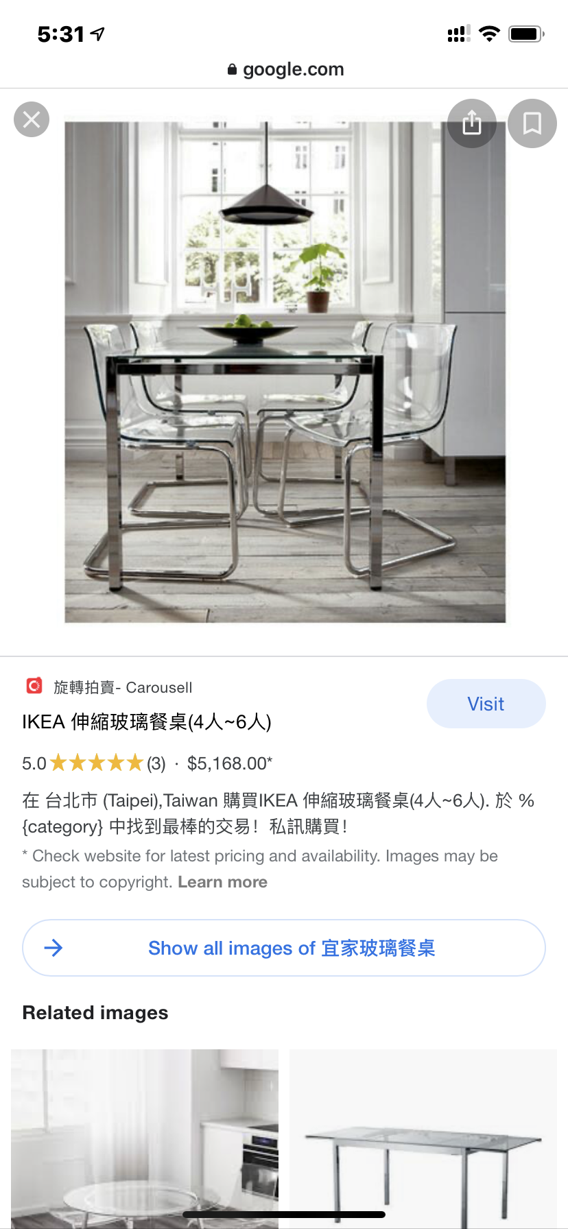 一组宜家钢化玻璃可延伸餐桌配4把有机玻璃椅子$300