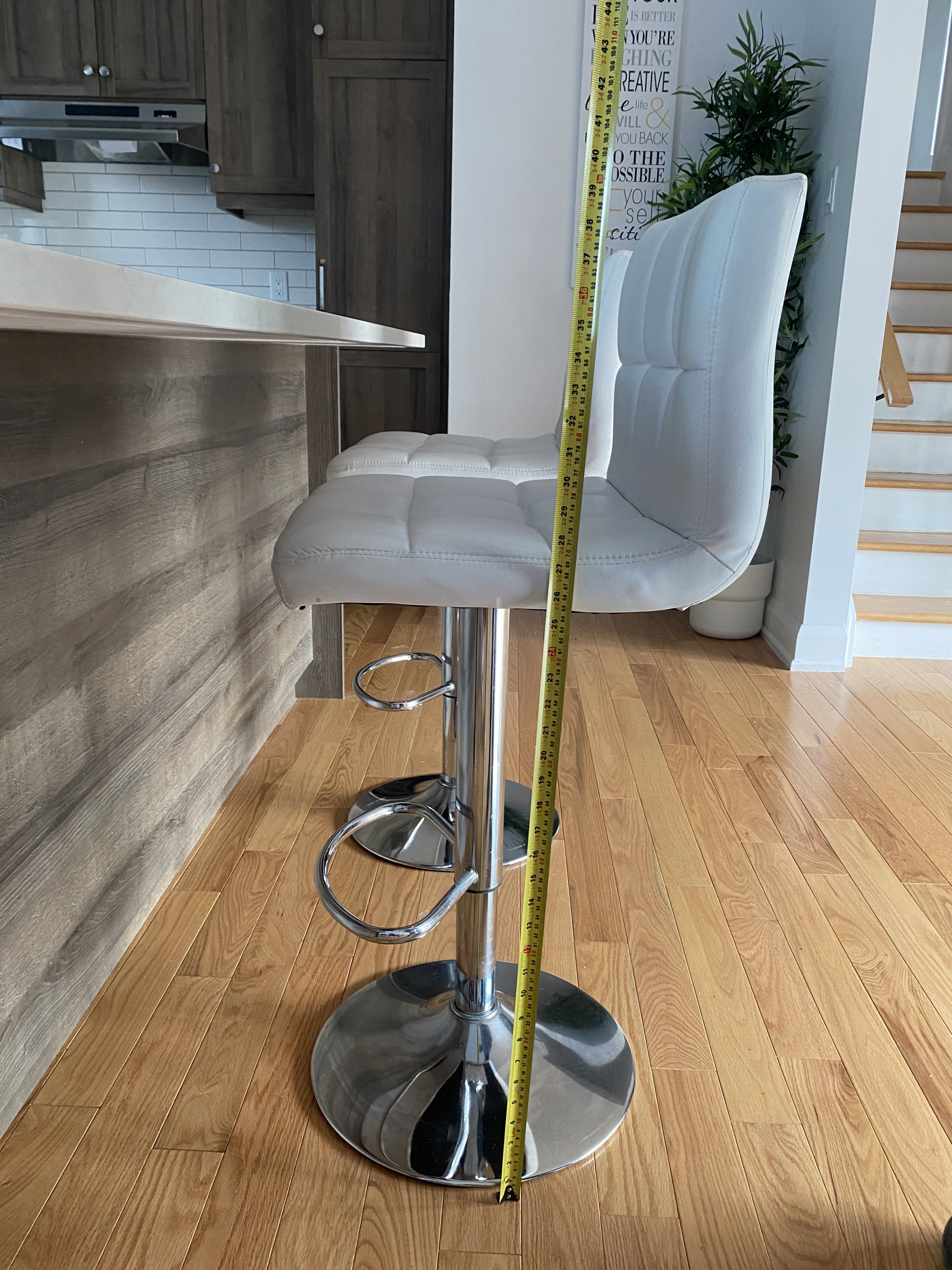 2个宜家白色仿皮面吧台高凳,$120
