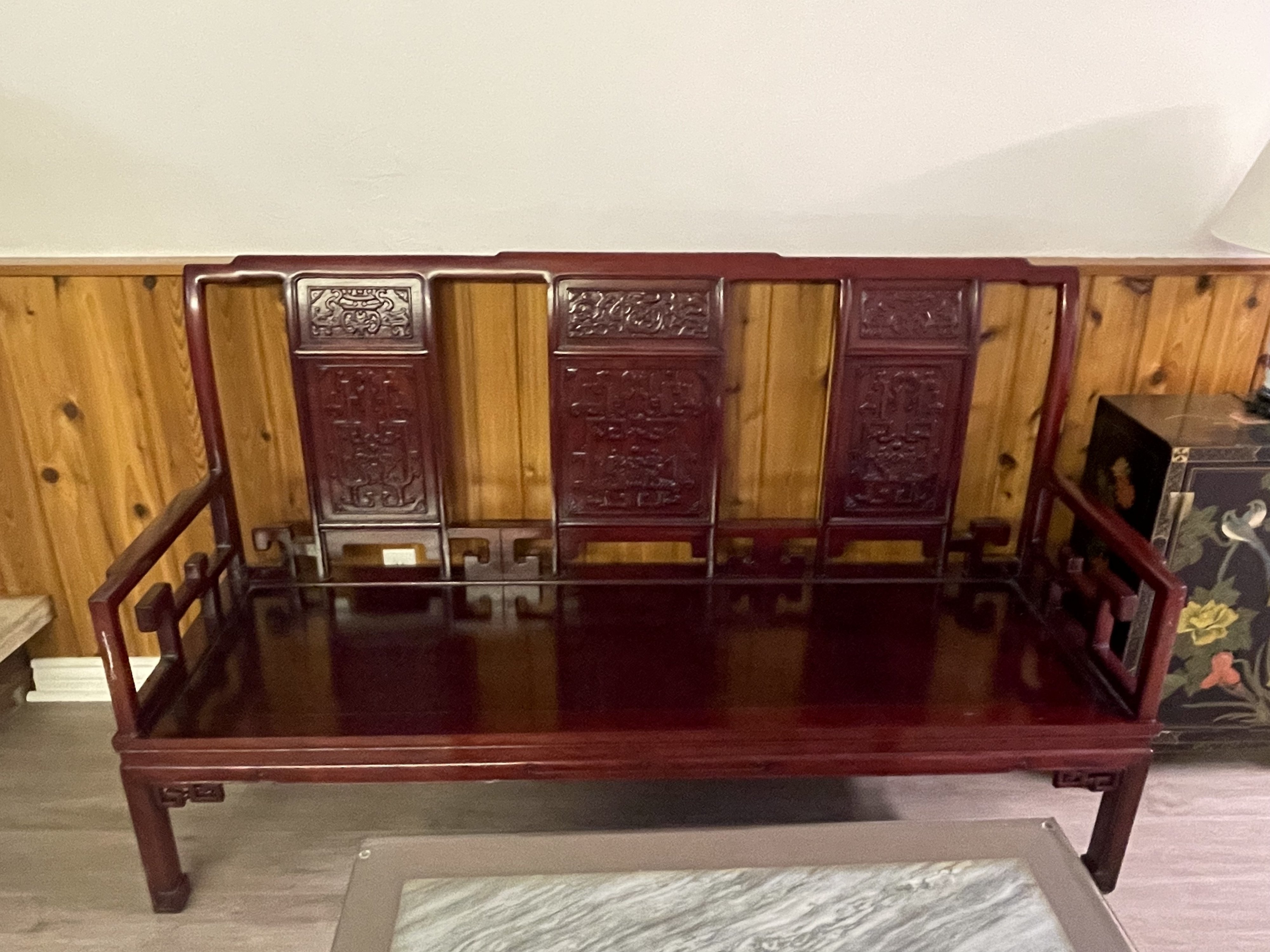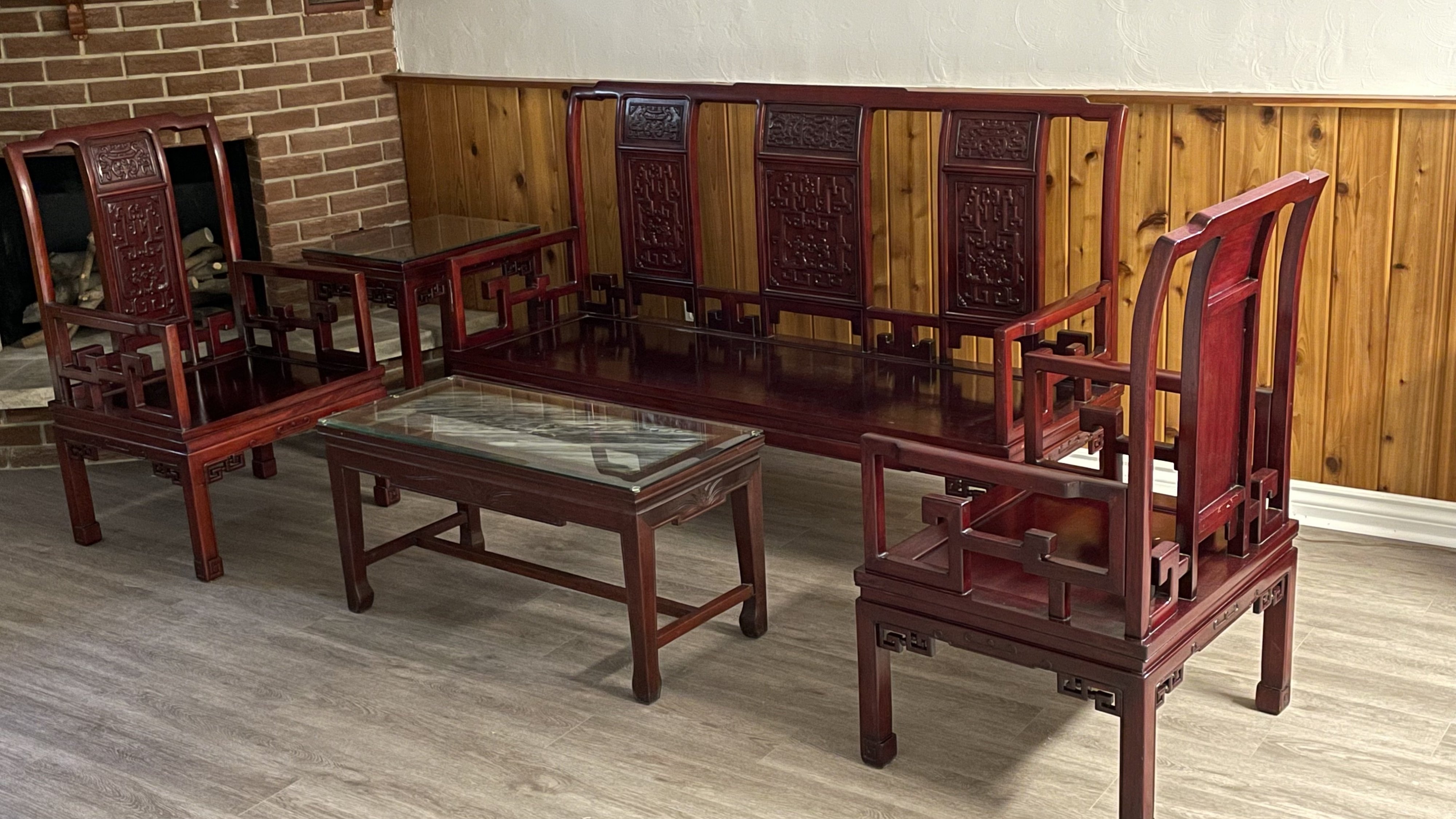 中式高级红木家具, 沙发5件九成新,$2500。 一对花架,$ 300。 做工讲究,银线镶嵌, 老虎腿。有兴趣者, 请联系 343-202-4608.谢谢。