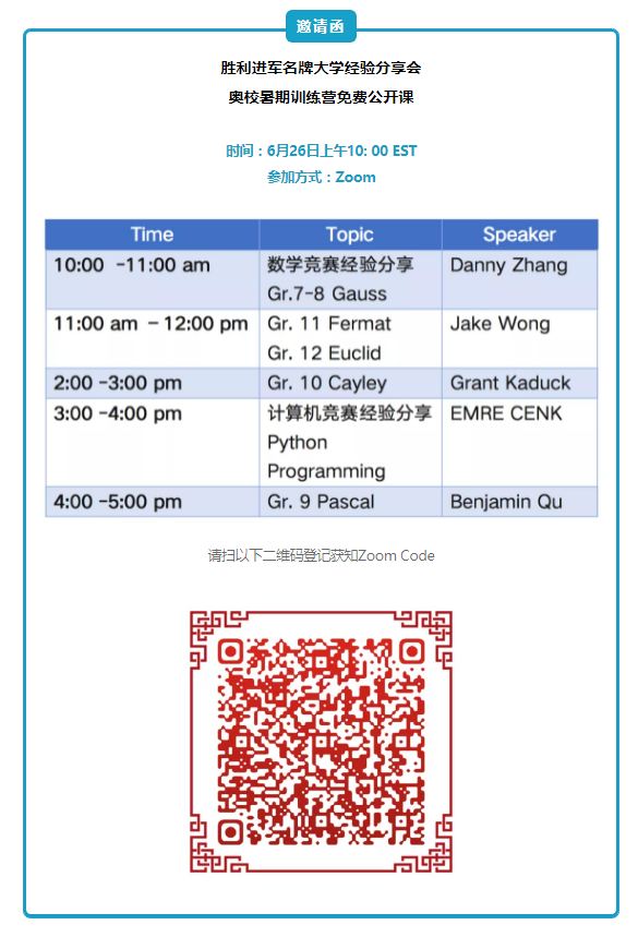 请扫以下二维码进群获得更多暑期培训班报名讲座和各公开课信息