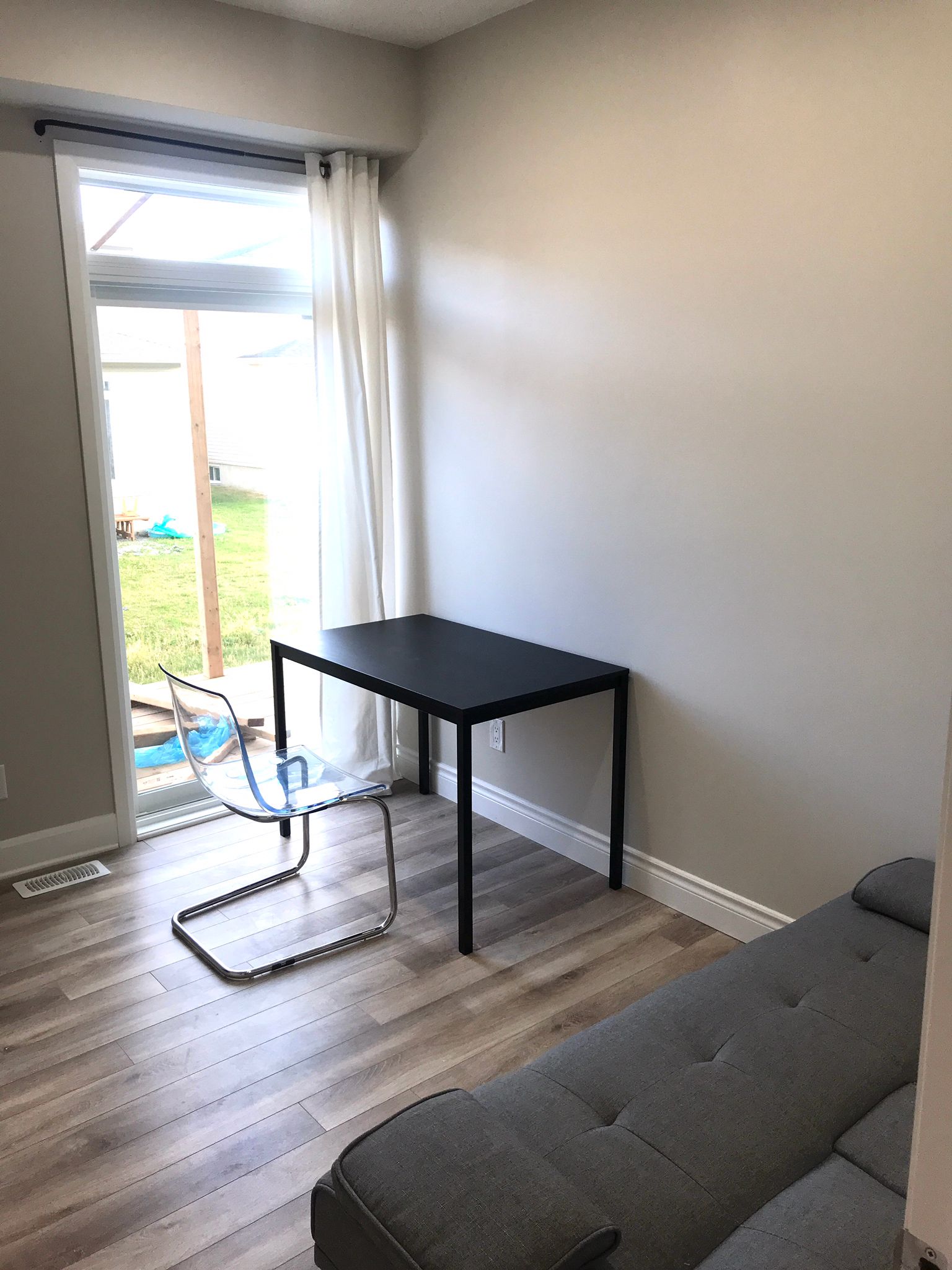 全新房子,现出租一楼的一房间,房间明亮。室友是皇后大学研究生(主房)和多伦多派过来建桥的年经工程师,都是华人,非常好相处. 去皇后大学只需15分钟,附近就是walmart, Costco, loblaws Canadian tire 和大型购物商场 cataraqui mall. 生活非常方便,社区素质高,大型发展商,非常安全。