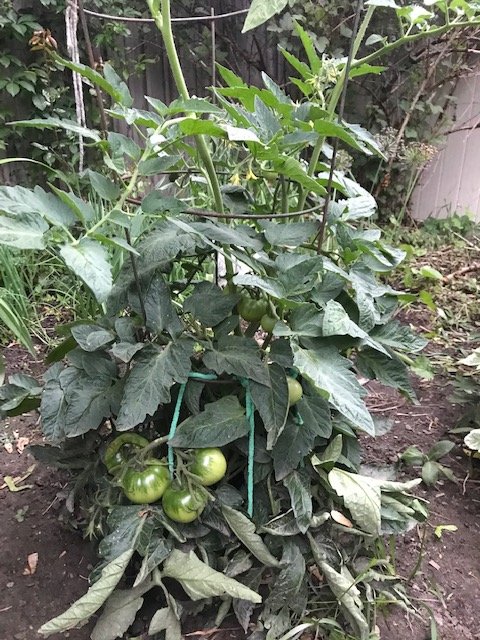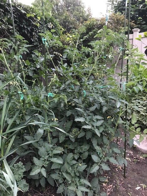 番茄三月中育苗,种在屋边正长起来,昨天看见有花蕾了。好厉害,我的还在育苗器里,只有几厘米高。