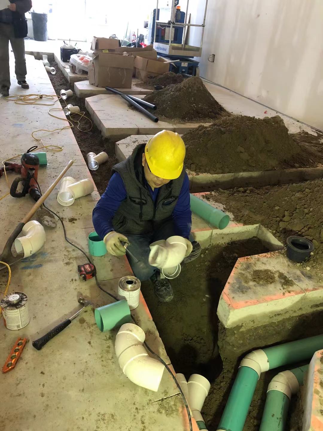 five guys 连锁店下水系统施工中