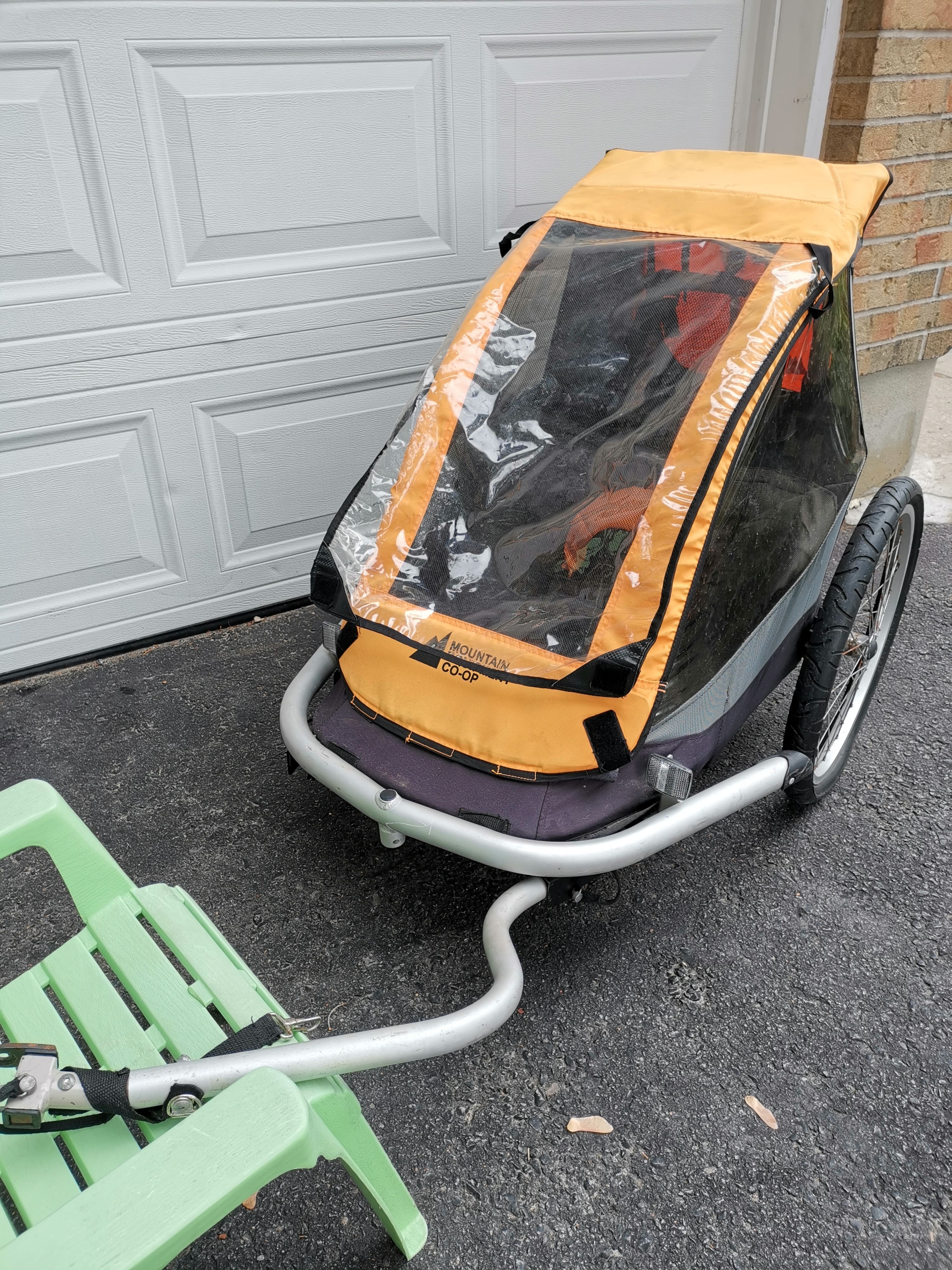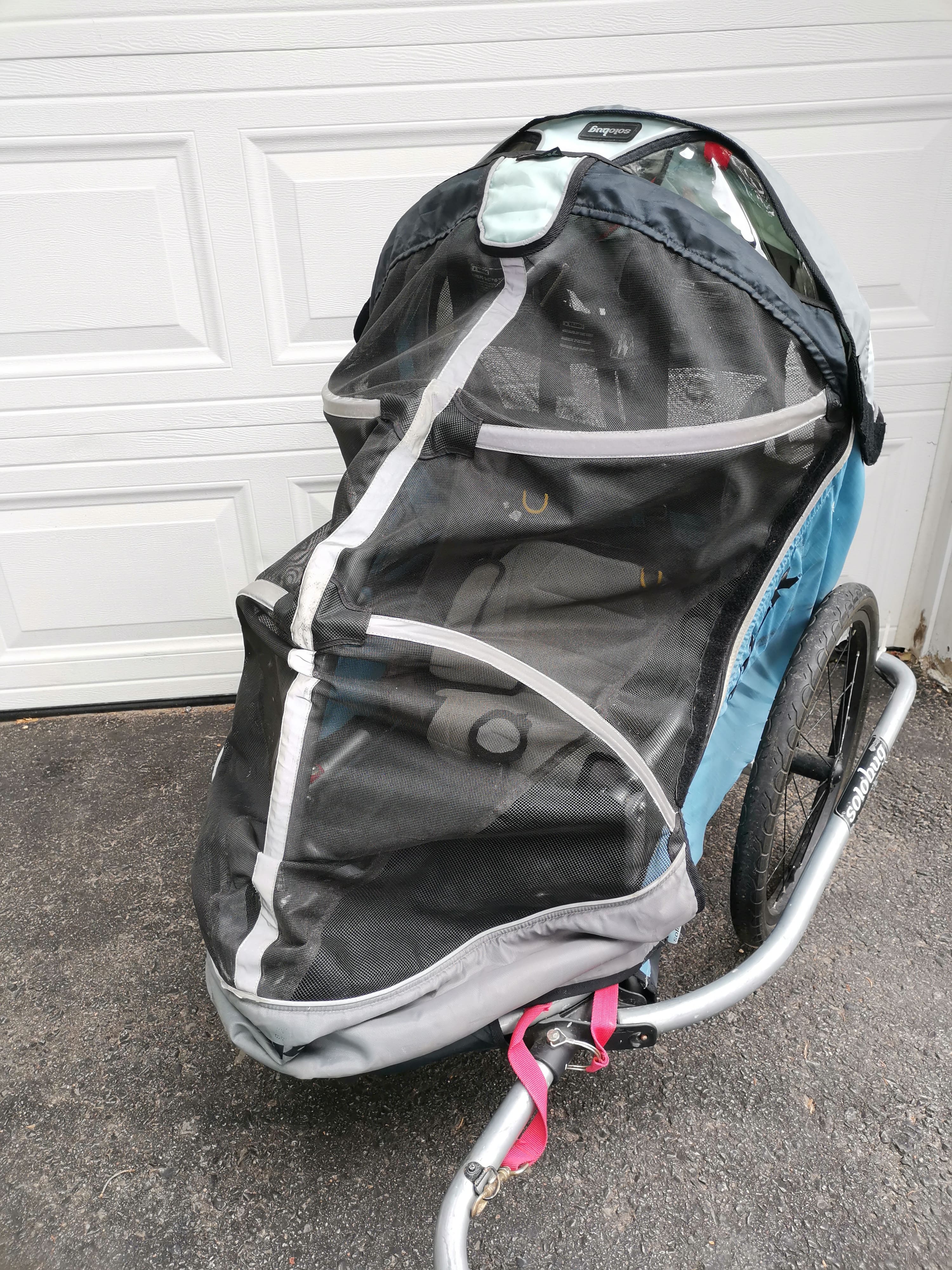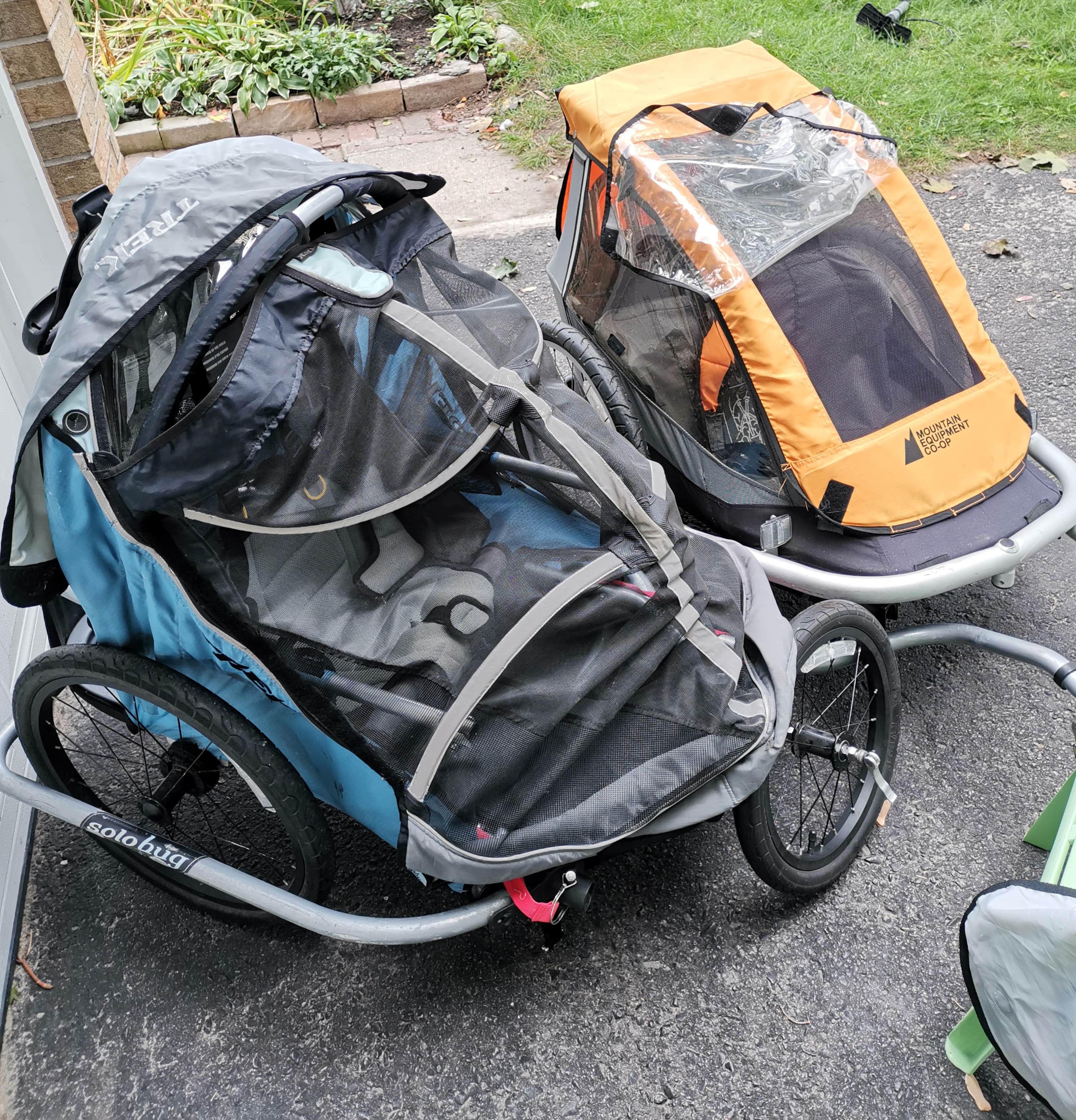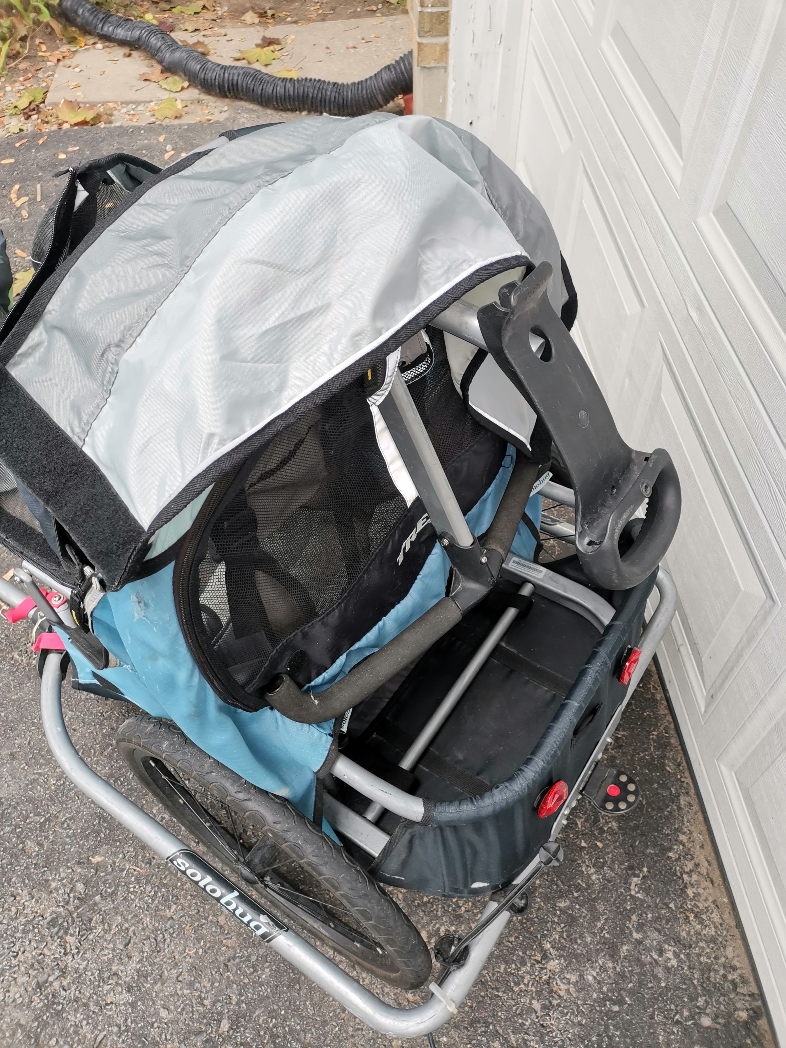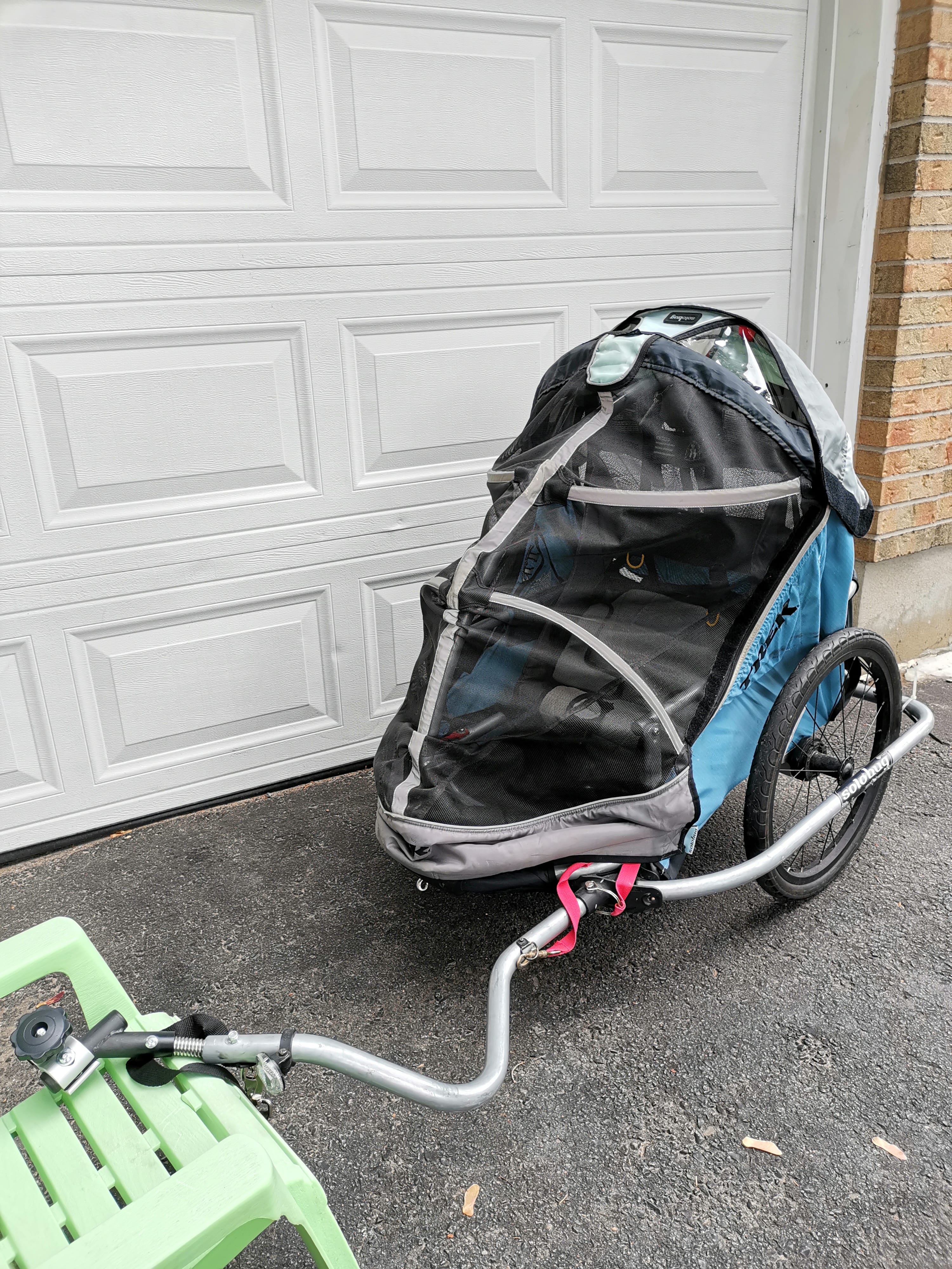 蓝色的比较高级一点,空间大一些,可以加上第3个轮子,变成stroller用。$180
