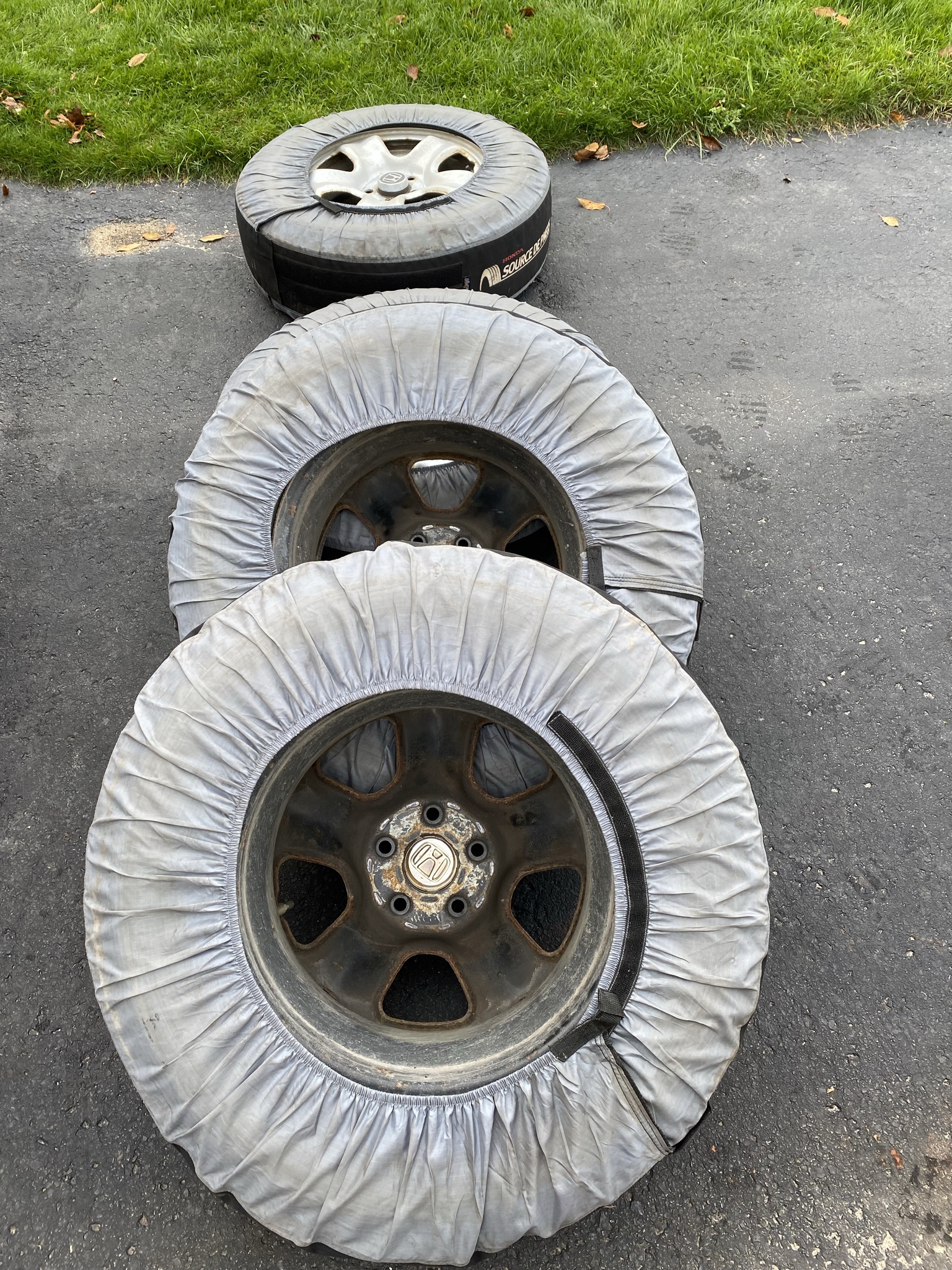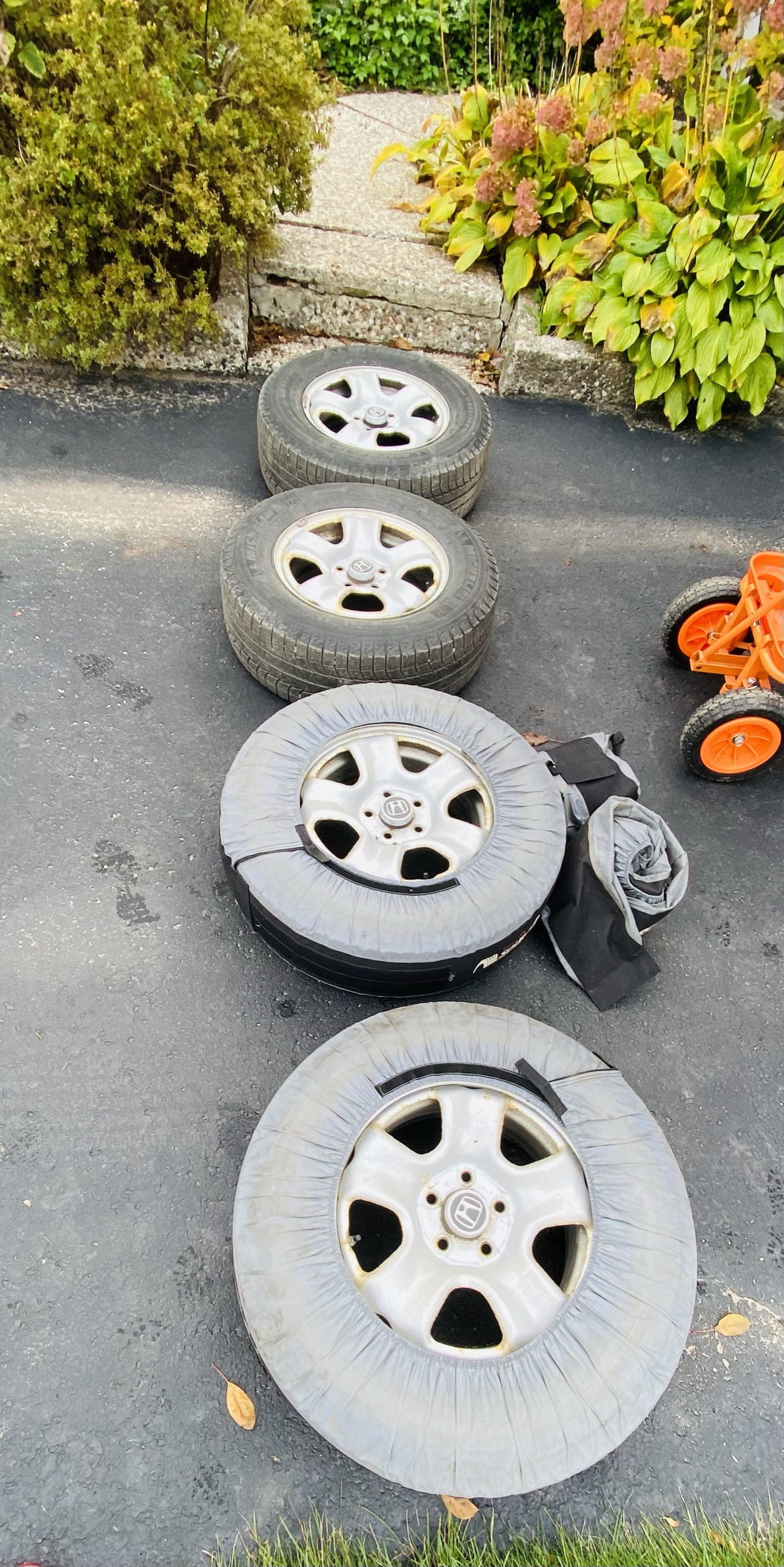 换车,闲置一套本田CRV冬胎加轮毂等一整套4 个。一手自家平时上班开,保存很好,全部购置于huntclube honda店。