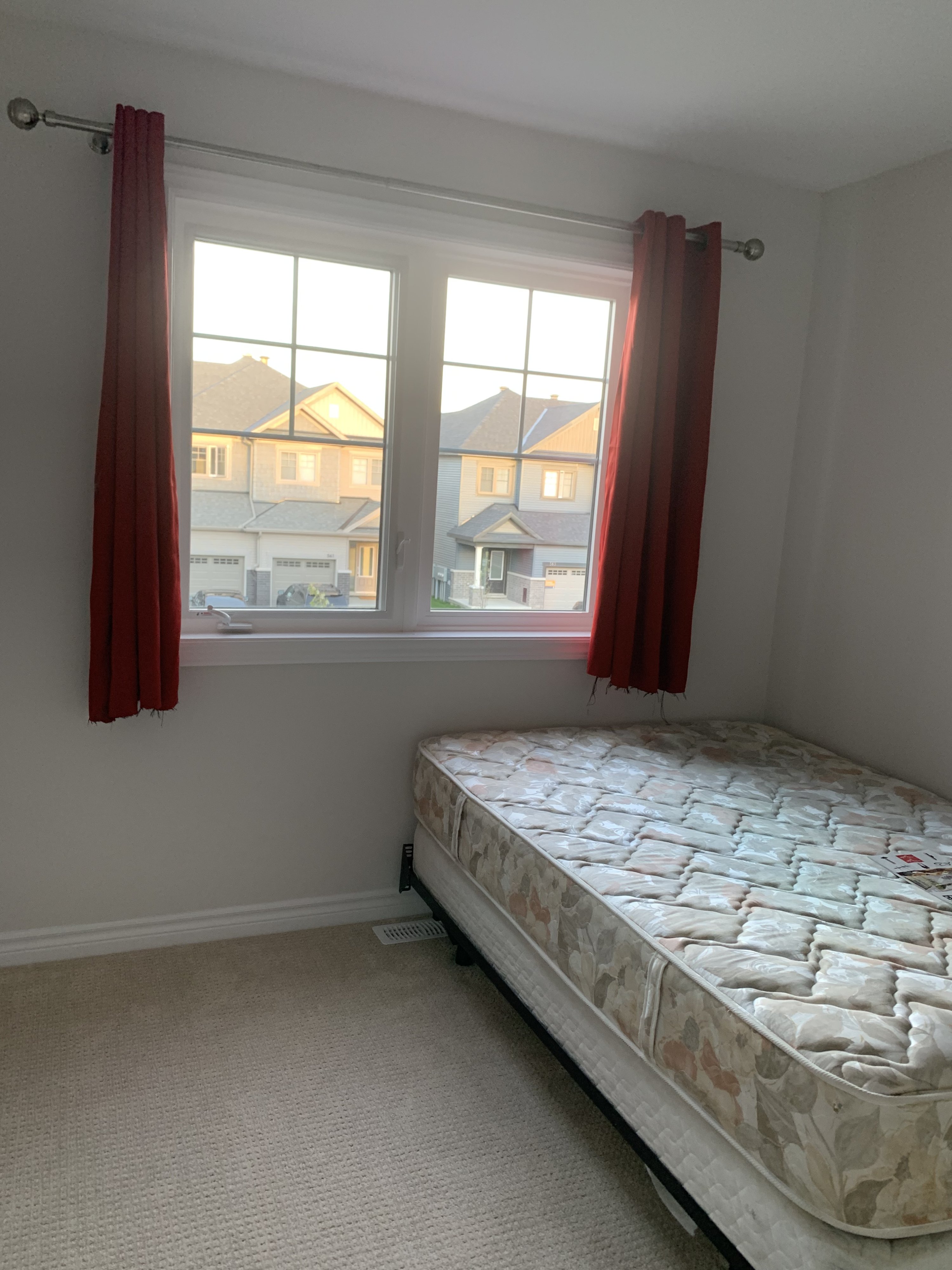 渥太华Orleans 东边新的townhouse 的次卧室出租,房屋位于成熟小区,周围环境优雅,有小学,中学,饭店购物中心开车5到10分钟,很方便,室内有简单家具,宽敞明亮,各种家电齐全,高速网,房型:渥太华Orleans 全新镇屋,3个卧室+2.5个卫生间,地下室已装修,超过2000尺,单车库,后院朝南,漫长冬日尽享客厅、厨房、卧室等主活动区暖暖阳光。