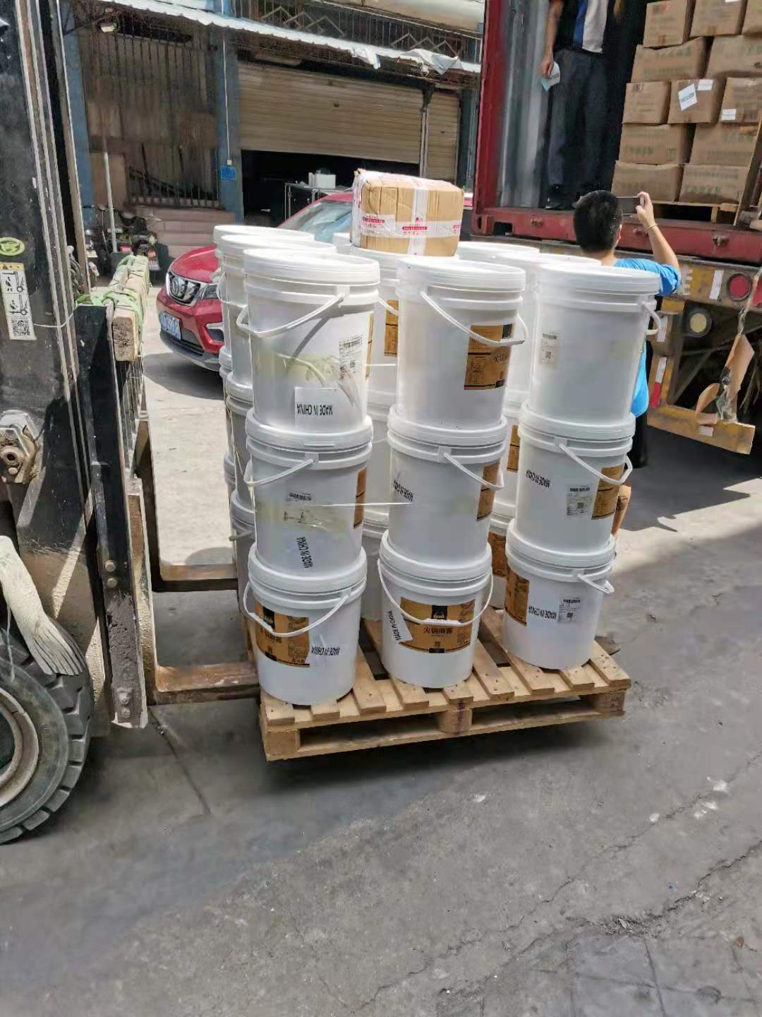3、 装柜当天由我司联系检验检疫局的工作人员上门对有木架/托盘/木箱包装的原木材料进行盖章,盖好章后等待装柜。装好柜后由工作人员下药进行熏蒸后关好柜门拖到码头。