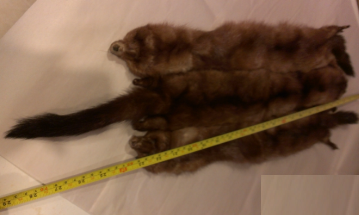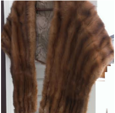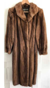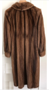 纯女士貂皮长大衣: 长约113厘米,肩宽约46厘米,袖长约61厘米,扣好胸围约110厘米,领高约14厘米。$350 黑色纯貂皮帽子1个: $45 纯貂皮披肩2个: $45/个 纯貂皮围巾1 个: $45 纯貂暖手煲1 个: $30