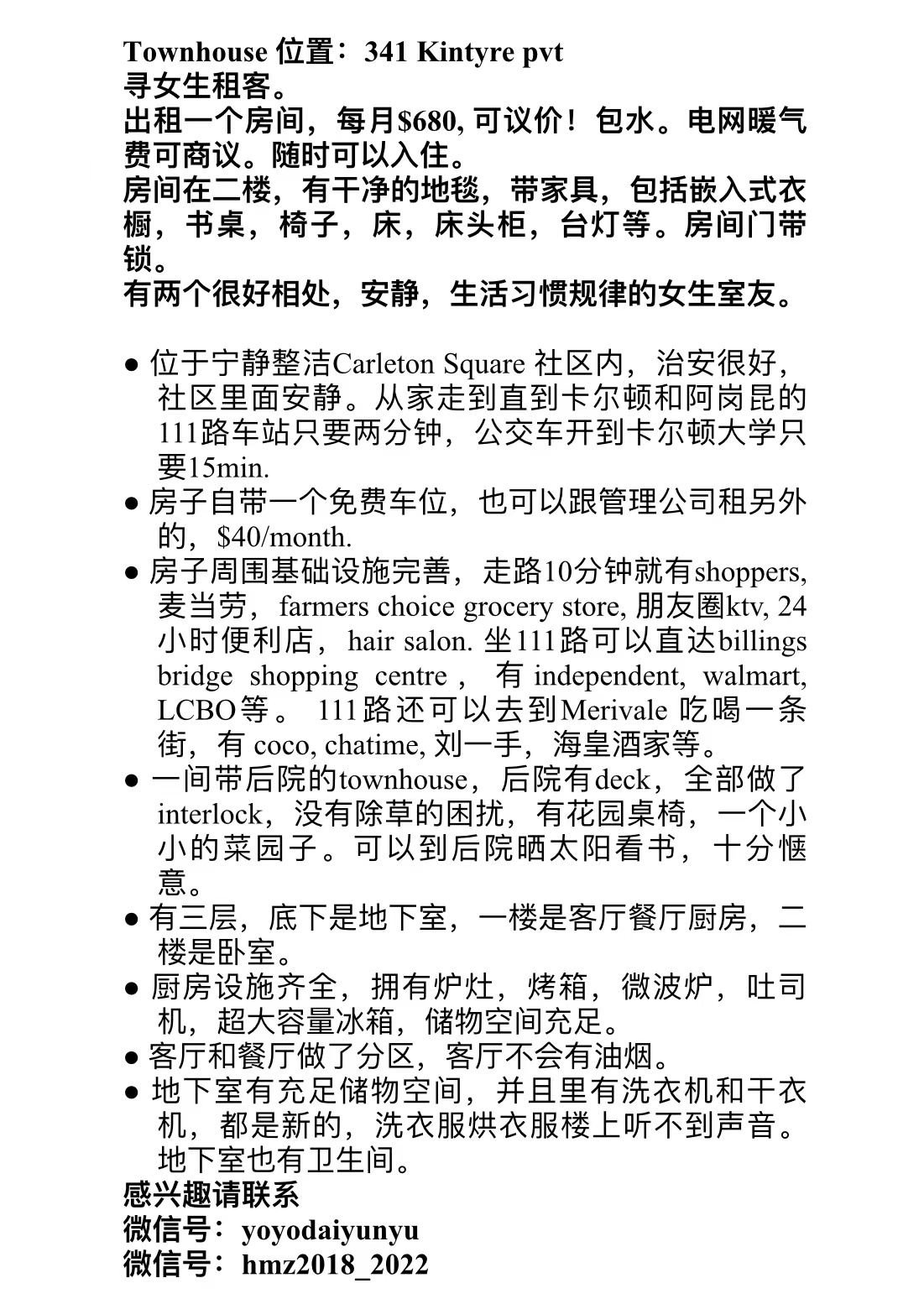 T Taylor 新手上路 注册 2019-04-30 消息 17 荣誉分数 2 声望点数 13 2021-12-28 #1 好房出租!价格便宜!有意者可图片中wx私聊!离cu很近,并且走路几分钟旁边就有shoppers!开车旁边也有不少的中国餐厅! 附件 0C32D0B9-ED38-4CBE-910B-FD42AB94F8F0.jpeg 521 KB · 查看: 63 F8C607F0-1EFE-43D1-B40F-B441AA36A334.jpeg 274.4 KB · 查看: 64