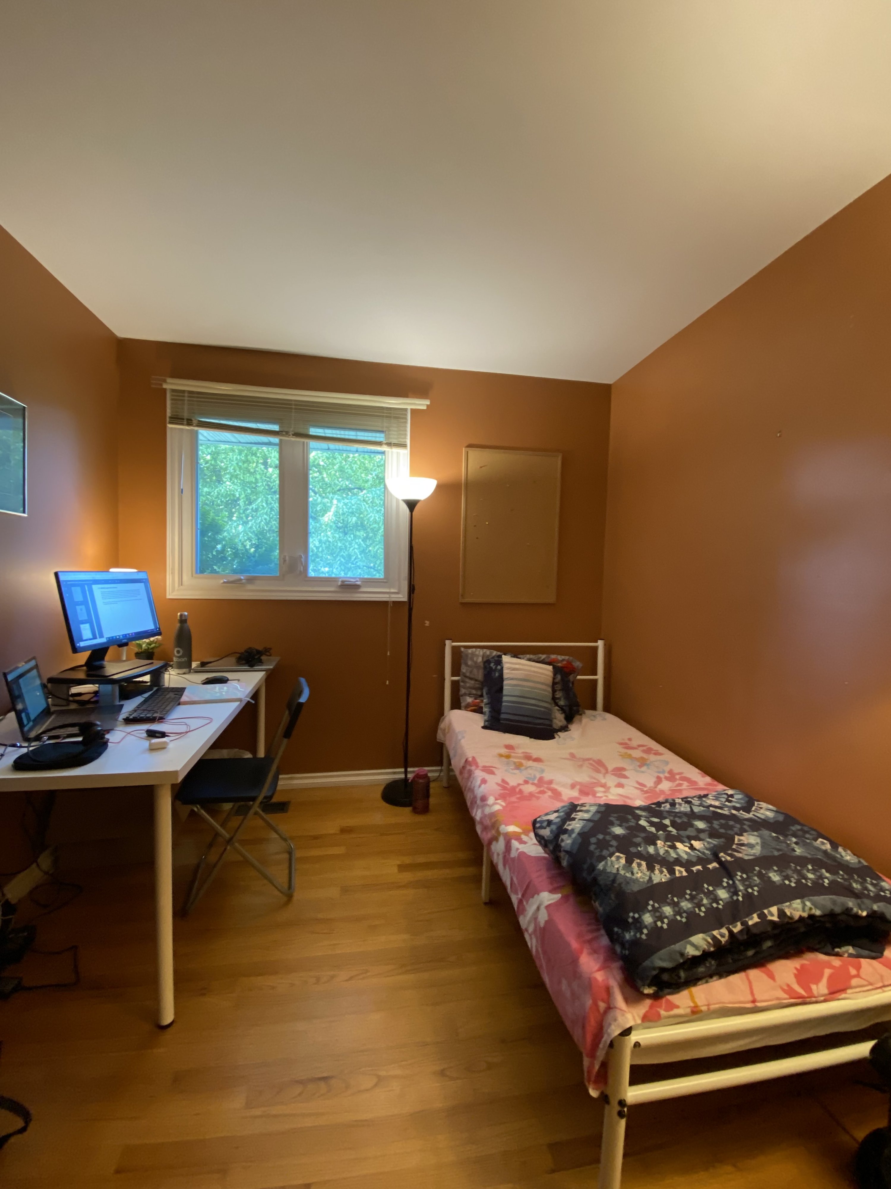 Mooney's附近,安静街道上的一平房一楼的一间卧房出租。女生,与另外两个女生一个公用厕所。