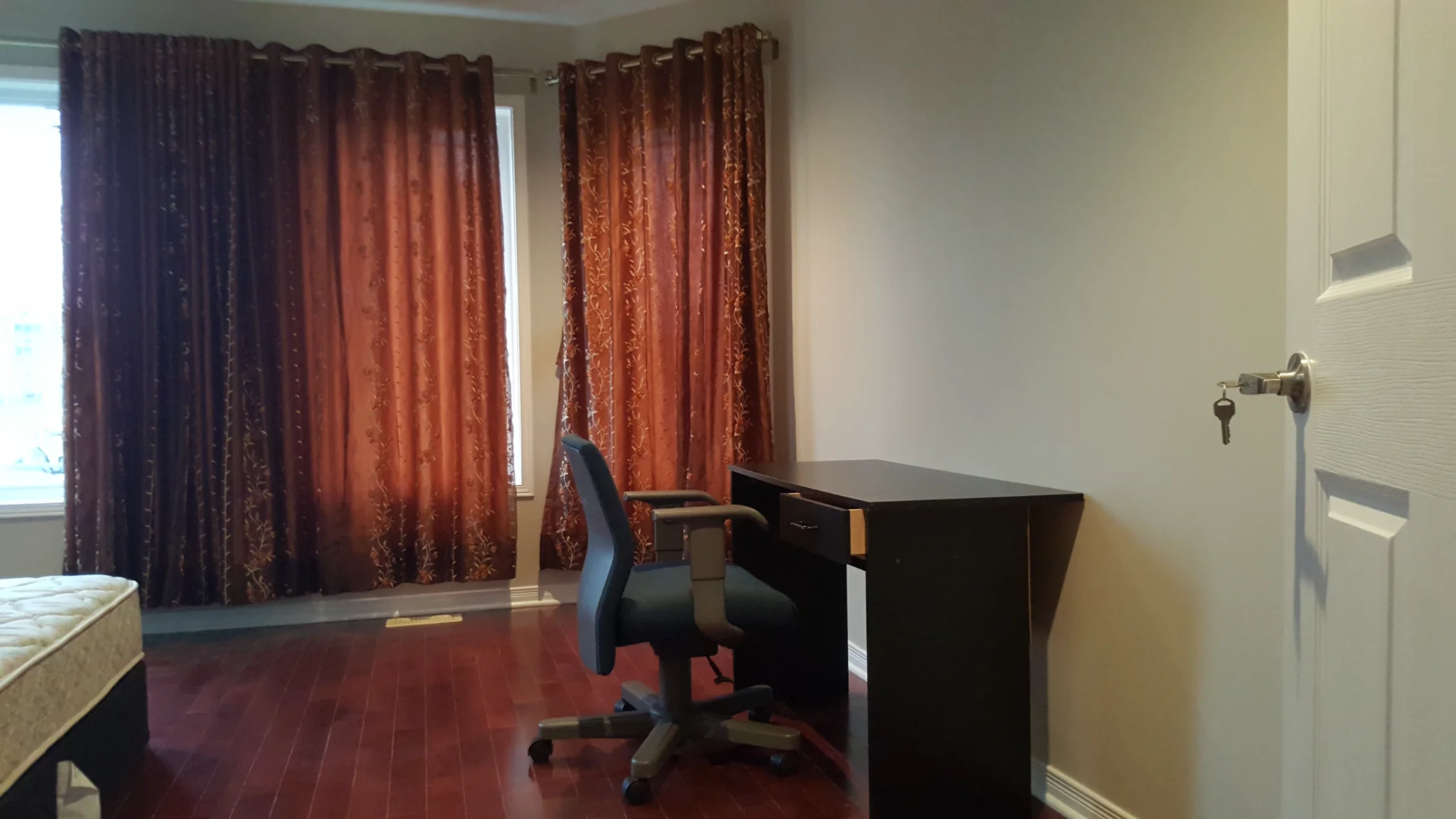 Barrhaven 宽敞明亮大房间出租,交通生活方便,门前步行5分钟内94,99,80,277各路巴士站,马路对面就有超市,药店,Pizaa 店,timhortons, 牙医等 各种生活配套设施,穿双拖鞋都可走到。车程十分钟内到达marketplace,walmark,staple,银行,电影院,餐馆应有尽有,还有巴士总站,各路巴士可达到市内任何地方。超大的房间内配有queen size 床垫,床头柜,书桌,台灯,衣柜,厨房微波炉,烤箱等可共享,即日起可随时拎包入住。与屋主共住,屋主房间有卫生间,所以租客只与另一租户(一对情侣)两人共享另一卫生间,房租600,包水电暖网,没有任何额外收费。房子只住三人,安静舒适,没有多人共住需要共用厨房卫生间时间冲突的烦恼。要求房客安静,整洁,有良好卫生习惯,无烟无宠无party,其他一切好商量,如房客无车,可以跟屋主车一齐外出购物或让屋主代买,适合学生,有正当职业的暂居单身人士或情侣,有意者请于每天2pm-6pm 直接联系看房,电话647-712-8023