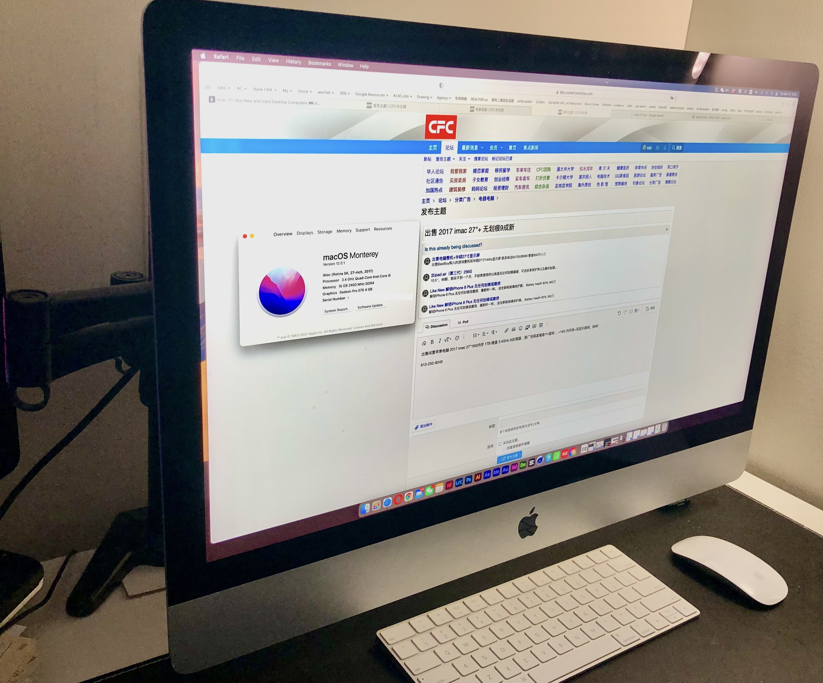 $880 出售闲置苹果电脑+iphone-x $880 2017 imac 27" 16G内存 1TB 硬盘 3.4GHz i5处理器 原厂包装盒键盘鼠标️ 16G 内存条+双显示器架+iphone-x(左下角轻微伤痕) $880 613-252-8240