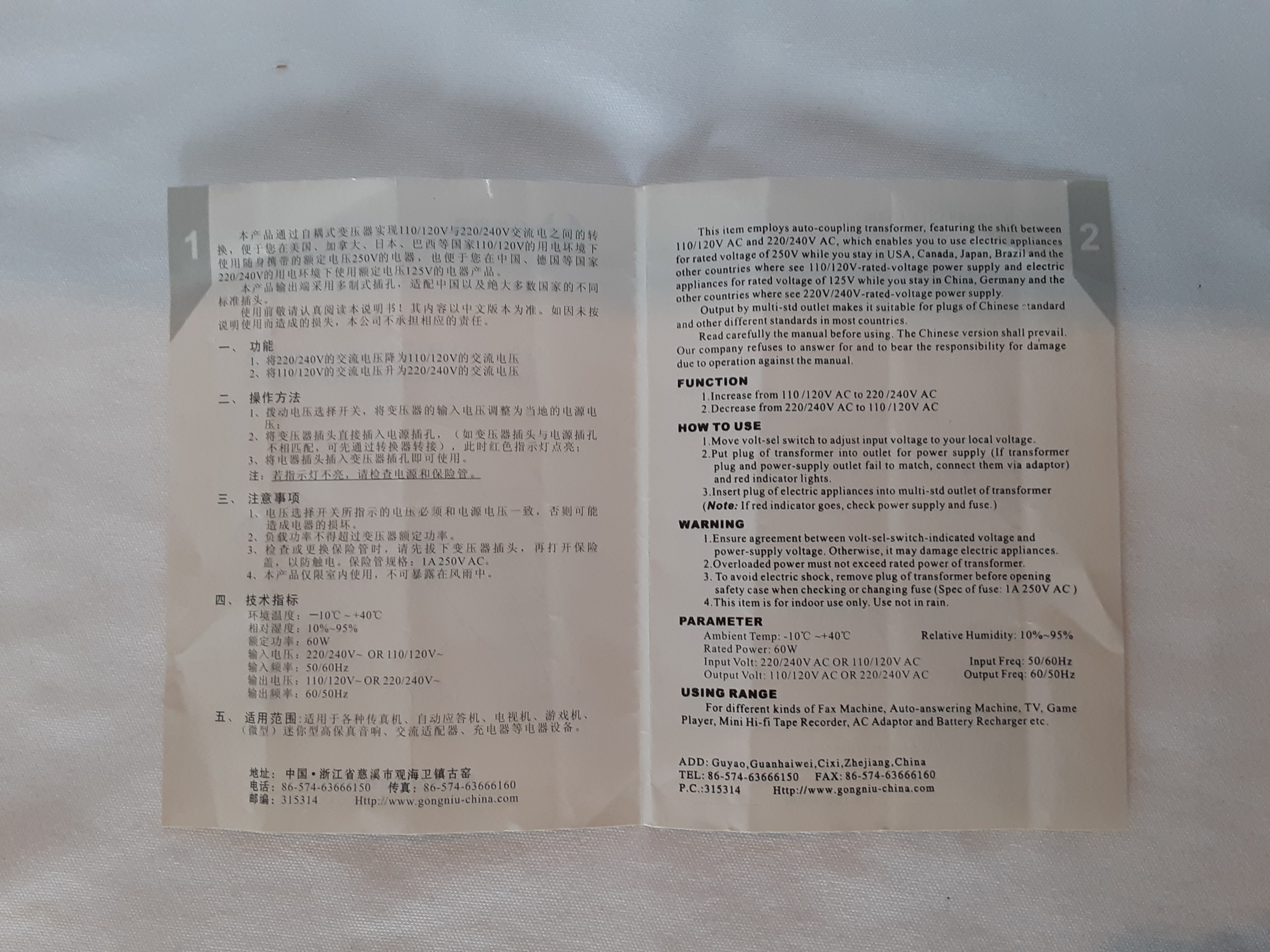 公牛电器双向变压器,买了但从未用过。50刀,可议价。