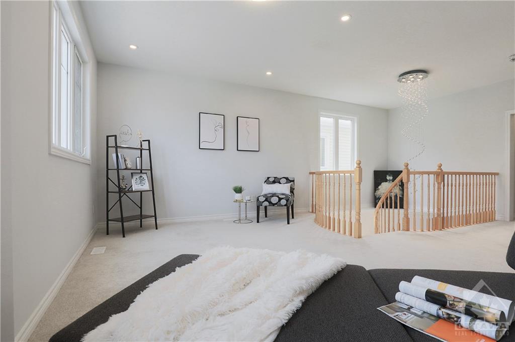 现代的LED大吊灯和曲面旋转楼梯带到二楼。映入眼帘的便是二楼的休息区域,也可用作办公区域,或者改造成第4间卧室。3个空间足够的卧室。主卧设有同“卧室”一样尺寸的衣帽间和令人惊叹的 5件套浴室,配有玻璃淋浴间和现代浸泡浴缸。另外2间卧室分享1间Jack and Jill 双水池卫生间。更有超大size洗衣房方便使用。