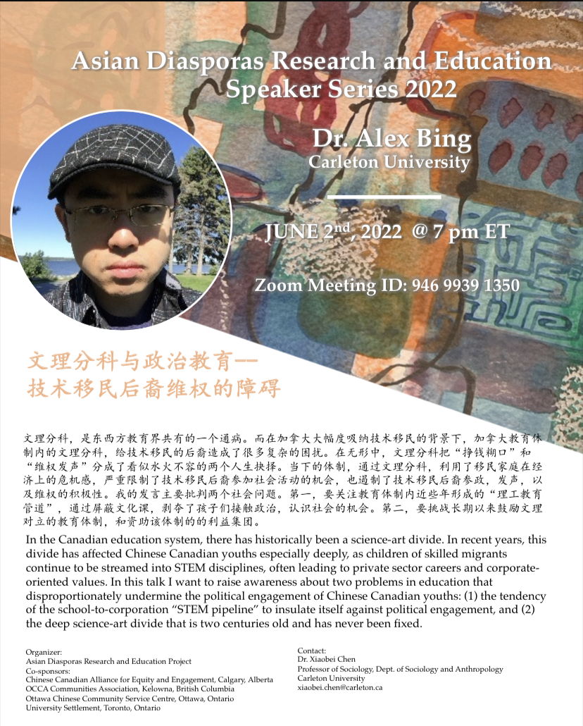 邴博士将于周四6月2日晚上7点(东部时间)做关于文理分科对加拿大华人参政的负面影响的讲座。这是一个至关重要的话题,欢迎大家参加。全场有中英文翻译。以下引自邴博士的论文。
