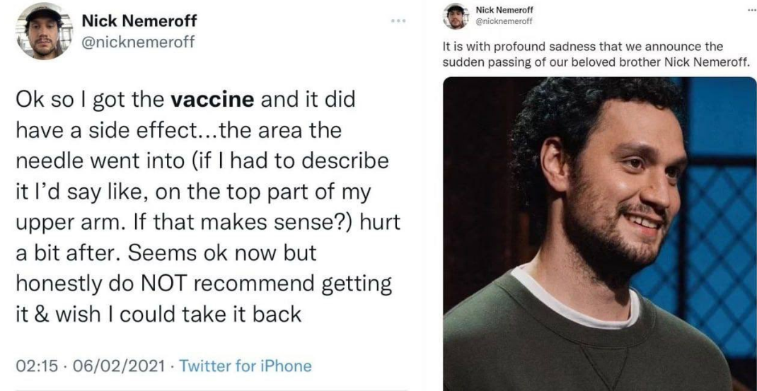 他还有个视频,说他不会打第三针了。如果活着,作为一个standup的喜剧演员,能表演太多和疫情相关的好段子了。