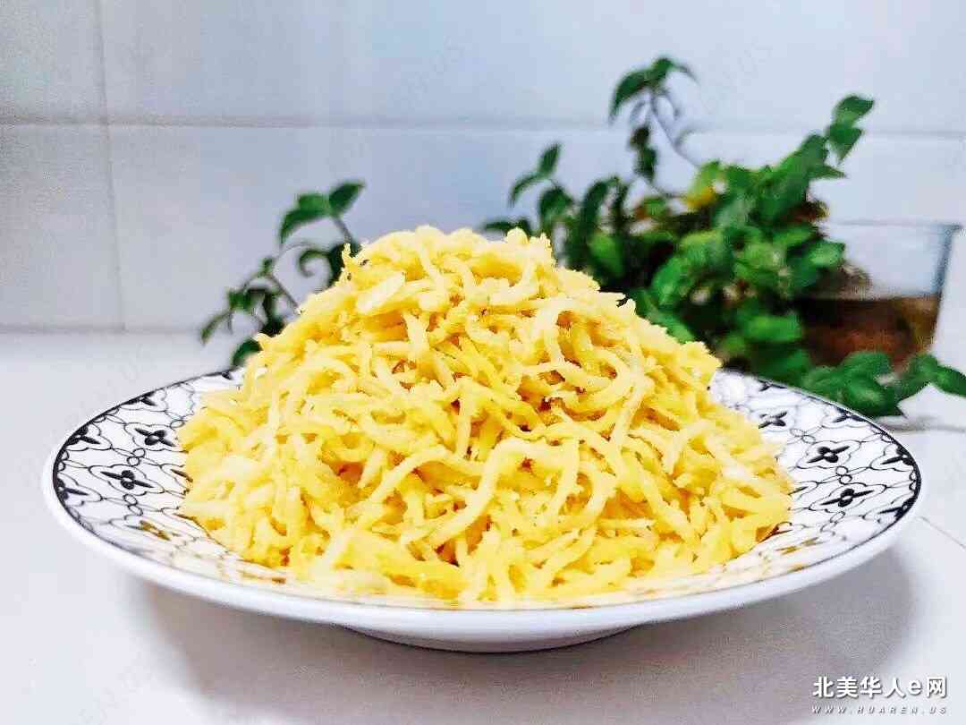 4. 加入面粉,让每一根土豆丝都粘上面粉。